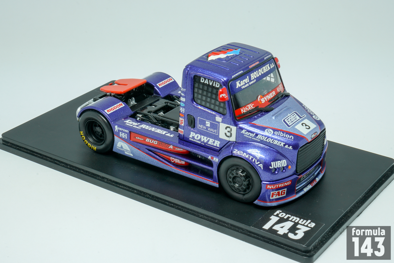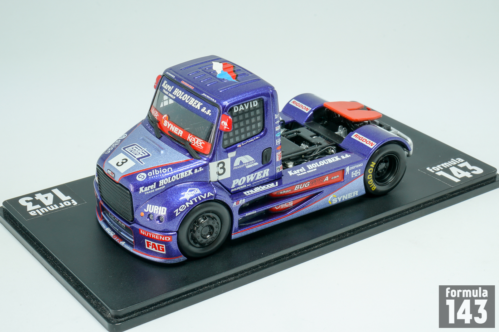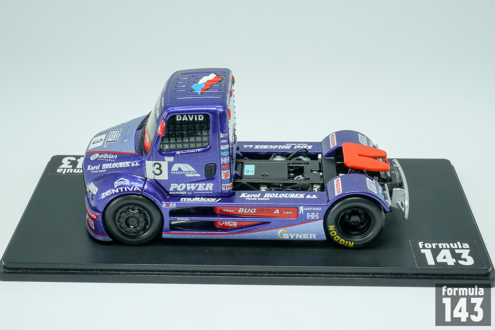 Buggyra Truck Racing Team was founded by Czech Martin Koloc in 2000, after his retirement as truck racing driver. But the Buggyra brand has much longer history. It was created (as Baghira) by Famous Czech designer and constructor of vehicles Václav Král in 1969. The name Baghira was inspired by the black panther in Rudyard Kipling’s Jungle Book. In 1973 Kral constructed his first racing vehicle under new brand – it was Tatra Baghira dune buggy. Then followed Škoda Baghira sports spyder and some other vehicles. If Kral developed as a designer of racing cars, then Koloc went on the other side – as a racing driver. He has entered the stage on European Truck Racing in 1993 with Czech LIAZ truck. Then Martin raced with Sisu and Praga, before joining his efforts as manager with Václav Král’s designer abilities. German designer Mario Kress, who worked with MAN, DAF and Mercedes Benz race trucks, was incorporated in Buggyra design team. For the 2001 season Kral and Kress designed a very unusual cabover racing truck with the cabin placed between the axels in order to provide better weight distribution. Buggyra MK 001 was powered by Caterpillar 1300 hp engine and was driven by Gerd Körber to 8th place in the Super trucks A category. New modification, Buggyra MK 002, brought two championship titles to Körber in 2002 and 2003.
