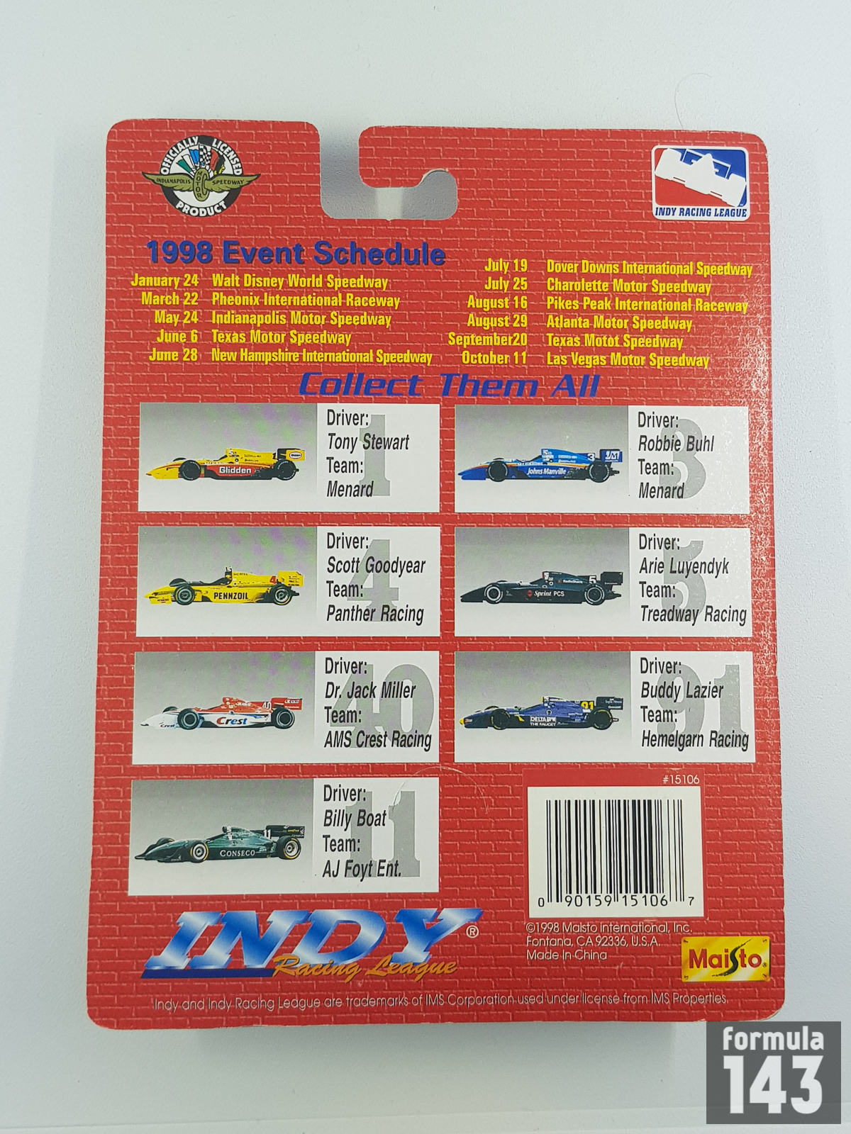 This scale model was manufactured by Maisto in their 1/64 1998 IRL series. See also model of this car in 1/43 by Ertl.