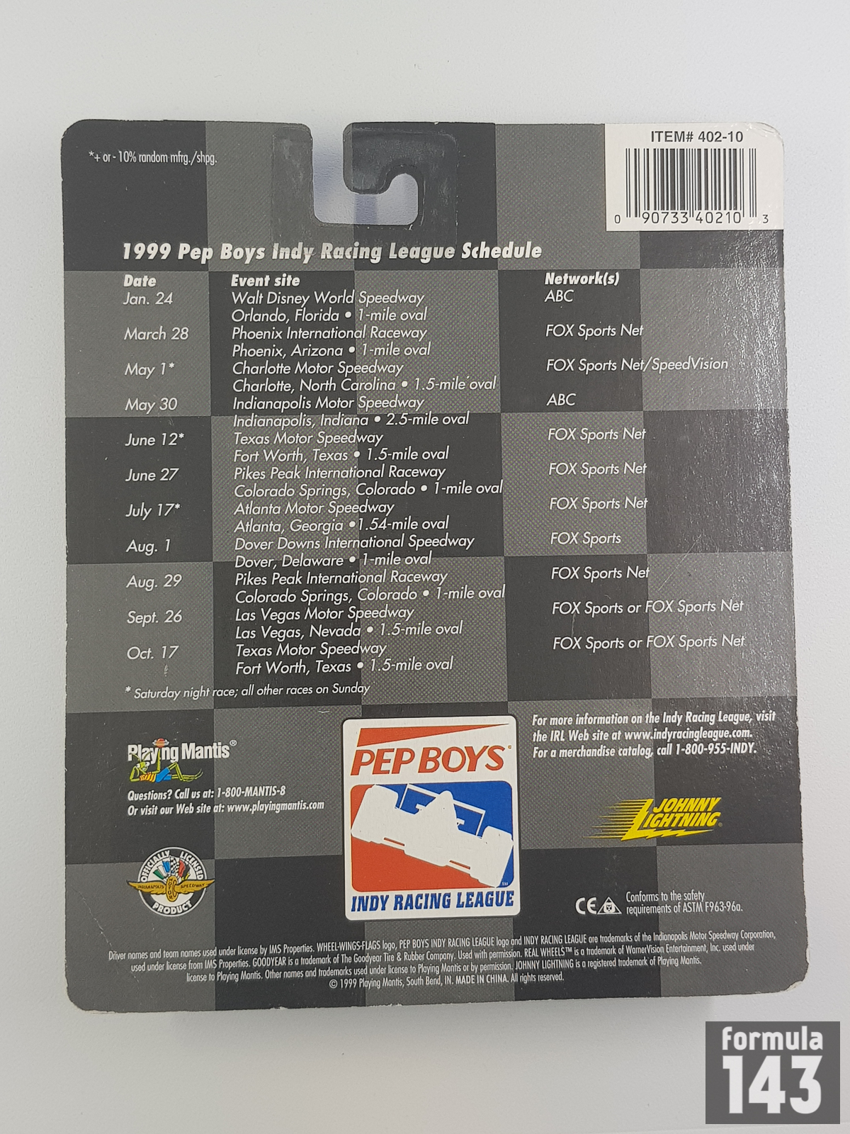 The Dallara IR9 chassis built for 1999 IRL season was continuous evolution of the first generation of Dallara Indycar chassis (IR7 and IR8 from 1997 and 1998) with various update kits. The cars were widely used by IRL teams along with G-Force chassis. Most of the Dallaras were powered by Aurora Oldsmobile V8, and few teams used alternative Nissan Infiniti V8 engines. Swede Kenny Brack, IRL champion of the 1998, continued to race for A.J. Foyt Enterprises in 1999. That season Brack achieved his major success winning Indianapolis 500 race and finished the season finished runner-up to Greg Ray.