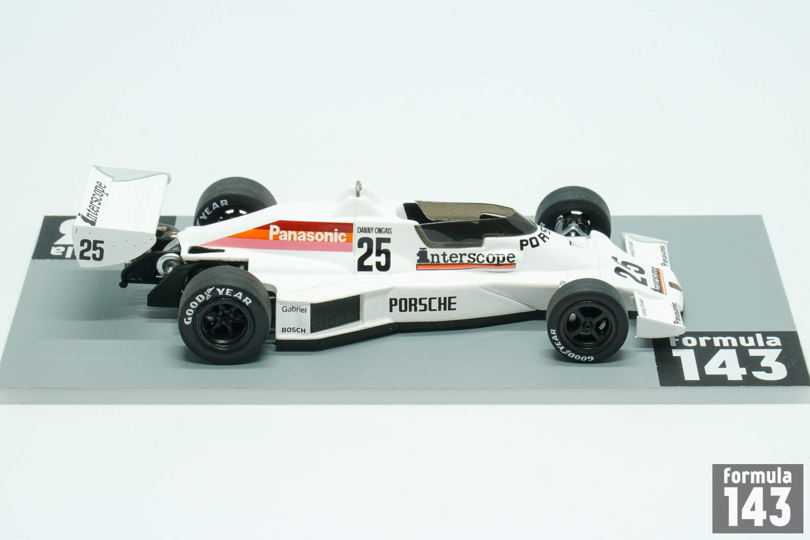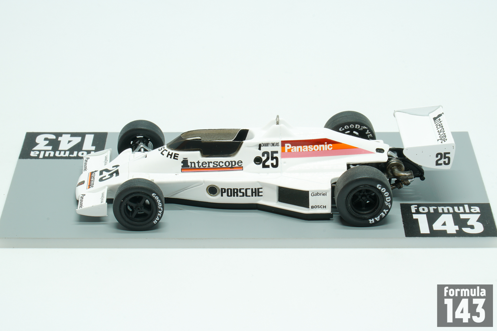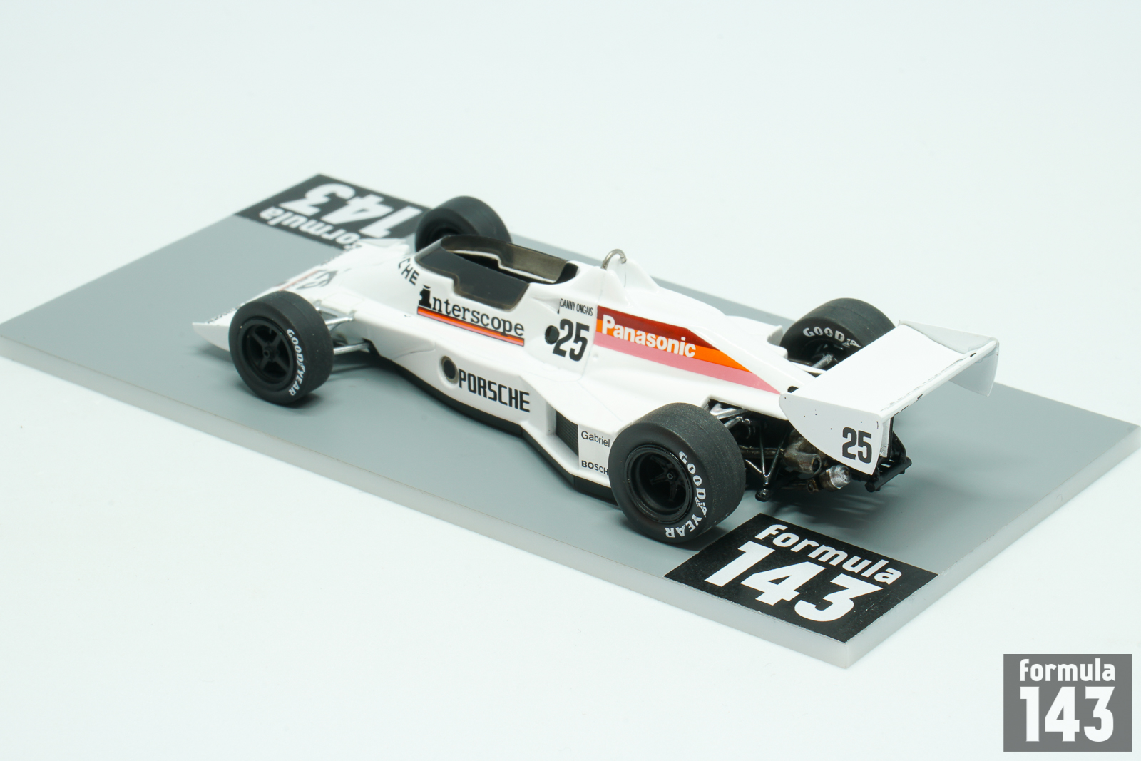 Interscope’s chassis designed by Roman Slobodinskij was a standard aluminum construction monocoque with a tubular rear drivetrain subframe. The design was similar to Parnelli chassis used by Interscope Racing before. The Interscope Racing team was founded by Frederick Woodruff “Ted” Field, an American media mogul, record executive, entrepreneur and film producer. Interscope Racing started off entering Danny Ongais in Formula 5000 in 1975, graduating to USAC racing and the Indianapolis 500 in Parnelli chassis. Field also funded Ongais to make occasional Formula One outings in a Penske during the 1977 season.