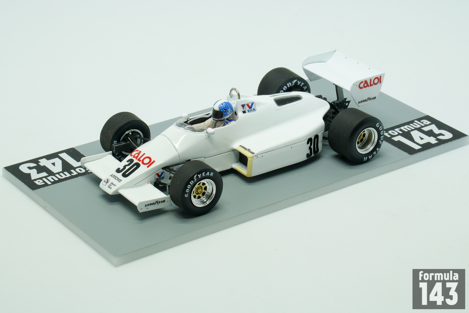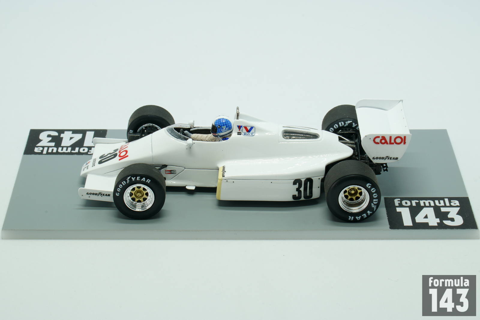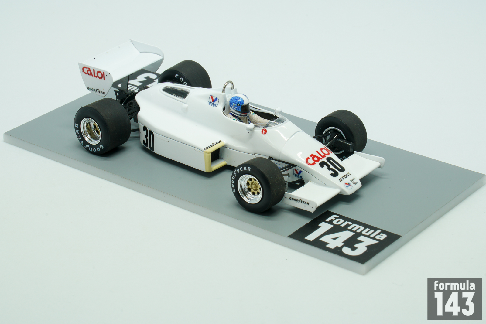 Arrows A6 was designed by David Wass and was raced in the 1983 and 1984 seasons. The A6 became a modest development of the reasonable A5, mostly focused on making it comply with the new regulations that banned refuelling and ground effects, in favour of a flat bottom with a diffuser as the back. An important decision in this respect was the centrally mounted fuel tank, in between the cockpit and the front of the engine, forced the engine to be mounted a little further back than would usually be wanted, giving the car an unusually heavy rear end. The A6 used a honeycomb monocoque frame, as a carbon fibre chassis was too expensive for Arrows. Arrows were one of the last teams to secure a contract for turbocharged engines, so the 1983 Arrows A6 had to use Cosworth DFV engines. The car #29 was piloted by Marc Surer through the whole season, while car #30 initially handed to Chico Serra was given to Thierry Boutsen since the 1983 Belgian Grand Prix. The team experienced financial difficulties and changed sponsors and liveries from race to race.