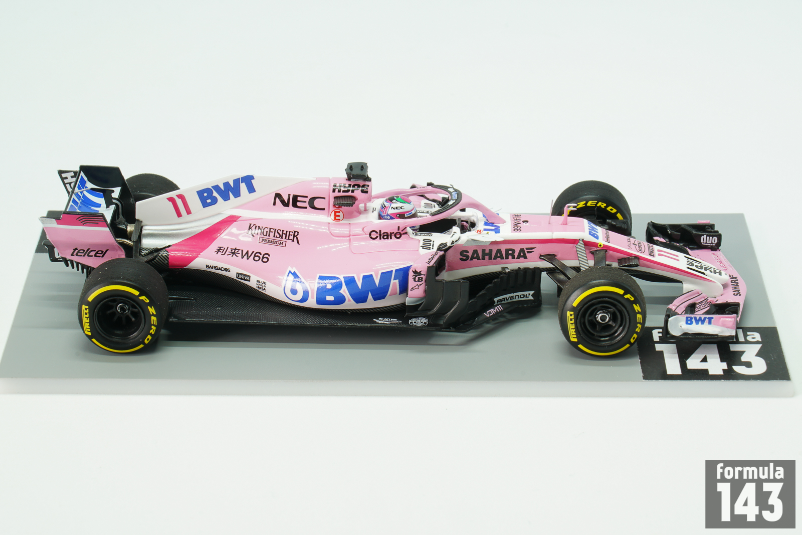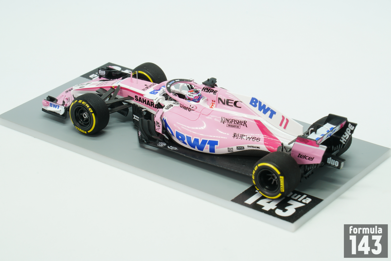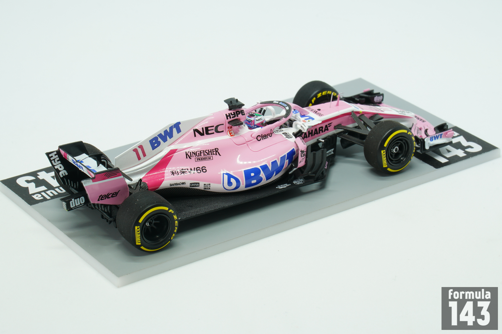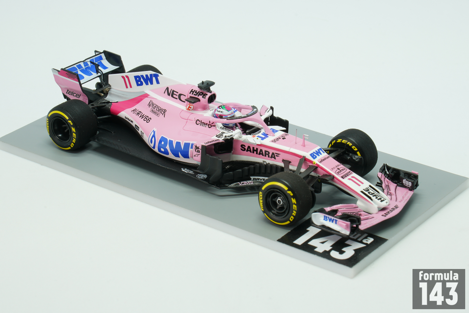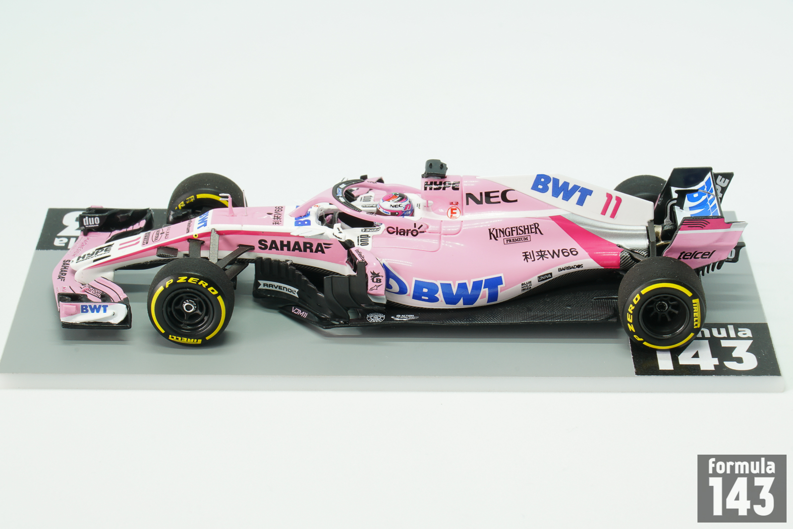 The VJM11 was eleventh and last car by Vijay Mallya’s Force India team. In the mid-season, after the Hungarian Grand Prix, the team had been put into administration by the High Court in London. The team’s assets were bought by a consortium of investors, named Racing Point UK, led by Lawrence Stroll, the father of then Williams driver Lance Stroll. Since the Belgian Grand Prix new team, Racing Point Force India, continued to enter the VJM11 under the Force India name. For the 2018 season the team retained the 2017 line up of Sergio Pérez and Esteban Ocon, and both drivers continued to race under Racing Point banner in the second half of the season. The car designed by Andrew Green (technical director), and duo of chief designers Akio Haga and Ian Hall was powered by Mercedes M09 EQ Power+ 1.6 L V6 engine and was a stable midfield runner. Perez scored 3rd place finish in the Azerbaijan Grand Prix, collected points in many other rounds, and finished the season 8th with 62 points. Ocon was 12th with 49 points. In the constructor’s championship Force India’s points were voided and the team excluded from the championship before the Belgian Grand Prix, as racing Point was new legal entity and was considered as new entrant.