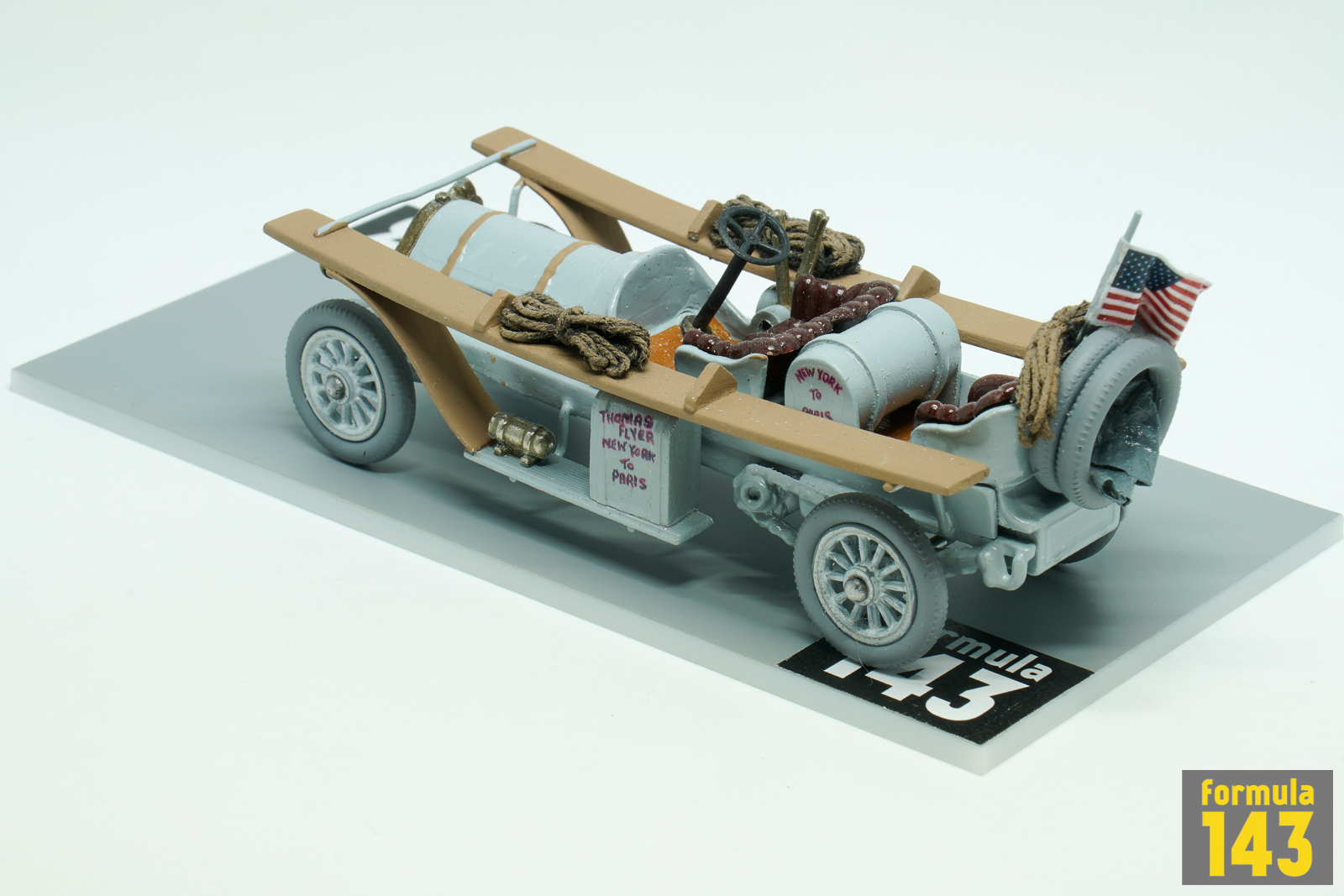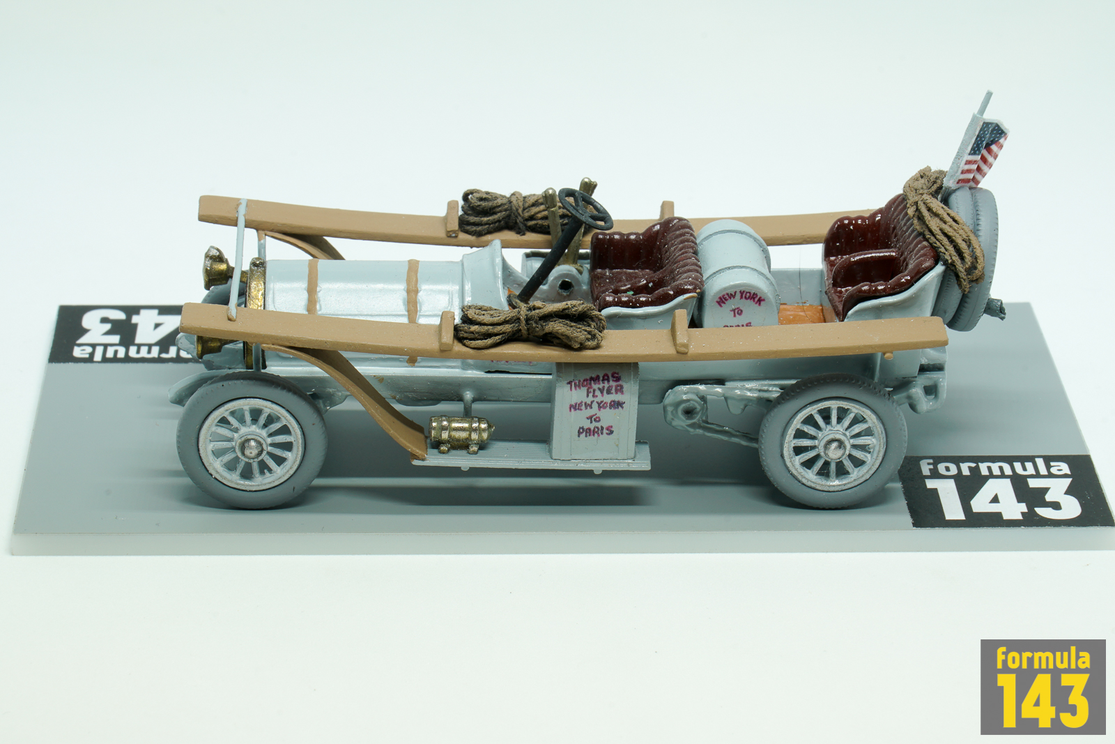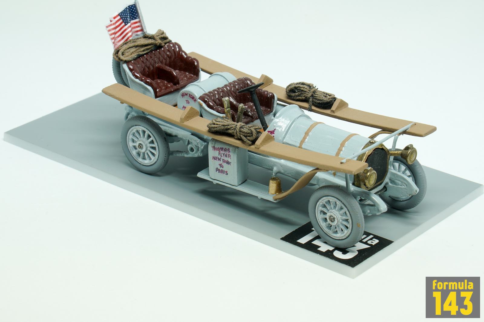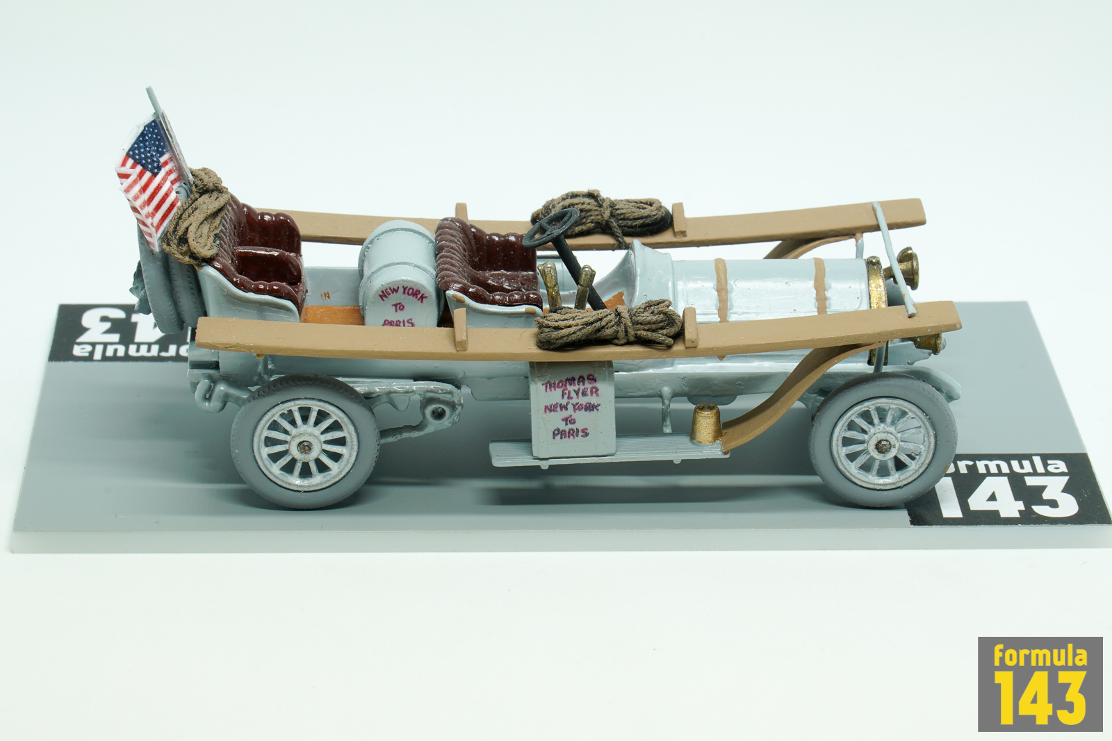Intercontinental and transcontinental marathon races were the significant part of motorsport in the 1900s. It started with the 1907 Peking – Paris race for almost 15 000 km. Next year even more ambitious challenge was held. The cars and drivers had to cover 16700 km from New York to Paris through US, Japan, Manchuria, Siberia and Europe. Six cars from 4 countries started the journey. Three cars (De Dion-Bouton, Motobloc, and Sizaire-Naudin) represented France, a Protos represented Germany, Zust represented Italy, and a Thomas Flyer represented the United States. The team of each car consisted of three members – a captain, mechanic / second driver and a mechanic or journalist. Thomas Flyer crew was racing driver Montague “Monty” Roberts as a captain and main driver, George Schuster as a mechanic and driver, and New York Times correspondent Walter Williams. Roberts withdrew from the Thomas team in Cheyenne after 40 days of driving to fulfill a previous obligation to drive in another race. His replacement was a young man named E. Linn Mathewson who was associated with the Thomas dealer in Wyoming. All three French competitors retired still in US, and 3 other continued to Asia and finally reached the destination. Thomas driven by George Schuster of Buffalo, NY and company arrived in Paris on July 30, 1908. German Protos, driven by Hans Koeppen, Hans Knape and Ernest Mass arrived in Paris four days earlier, but had been penalized a total of 30 days for not going to Japan and for shipping the Protos part of the way by railcar. This gave the victory to Thomas Flyer by a fantastic, albeit virtual, margin of 26 days. The Italian Zust of Emilio Sirtori, Antonio Scarfoglio and Henri Haaga arrived later in September 1908.