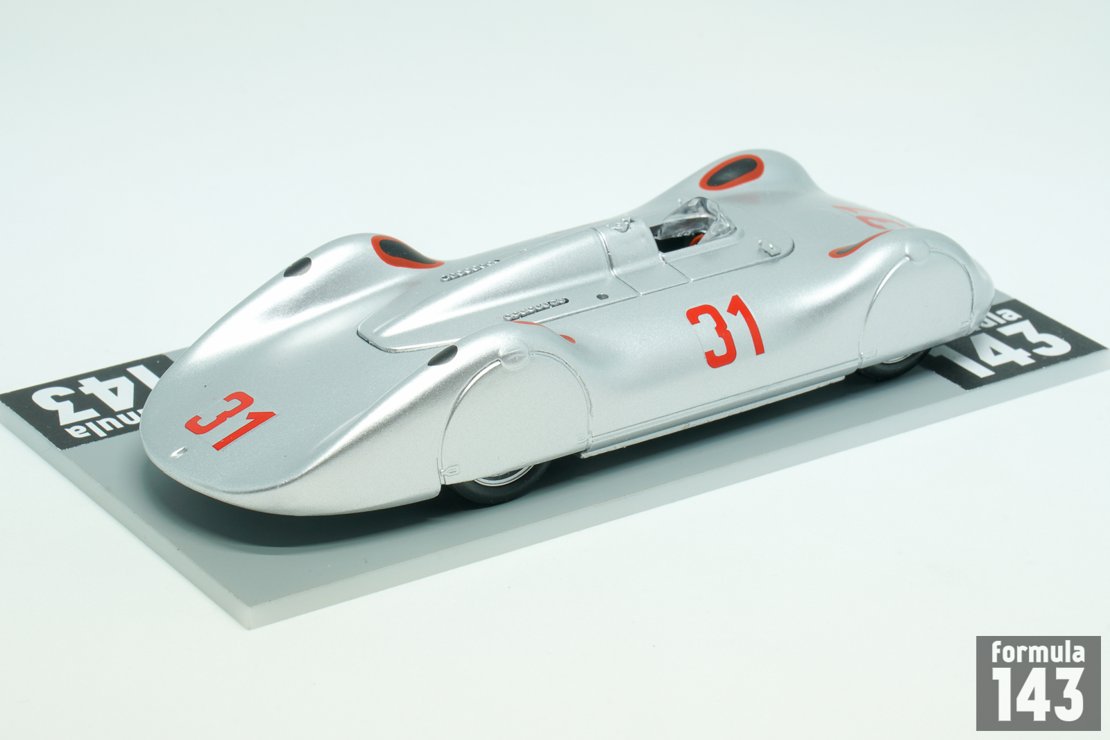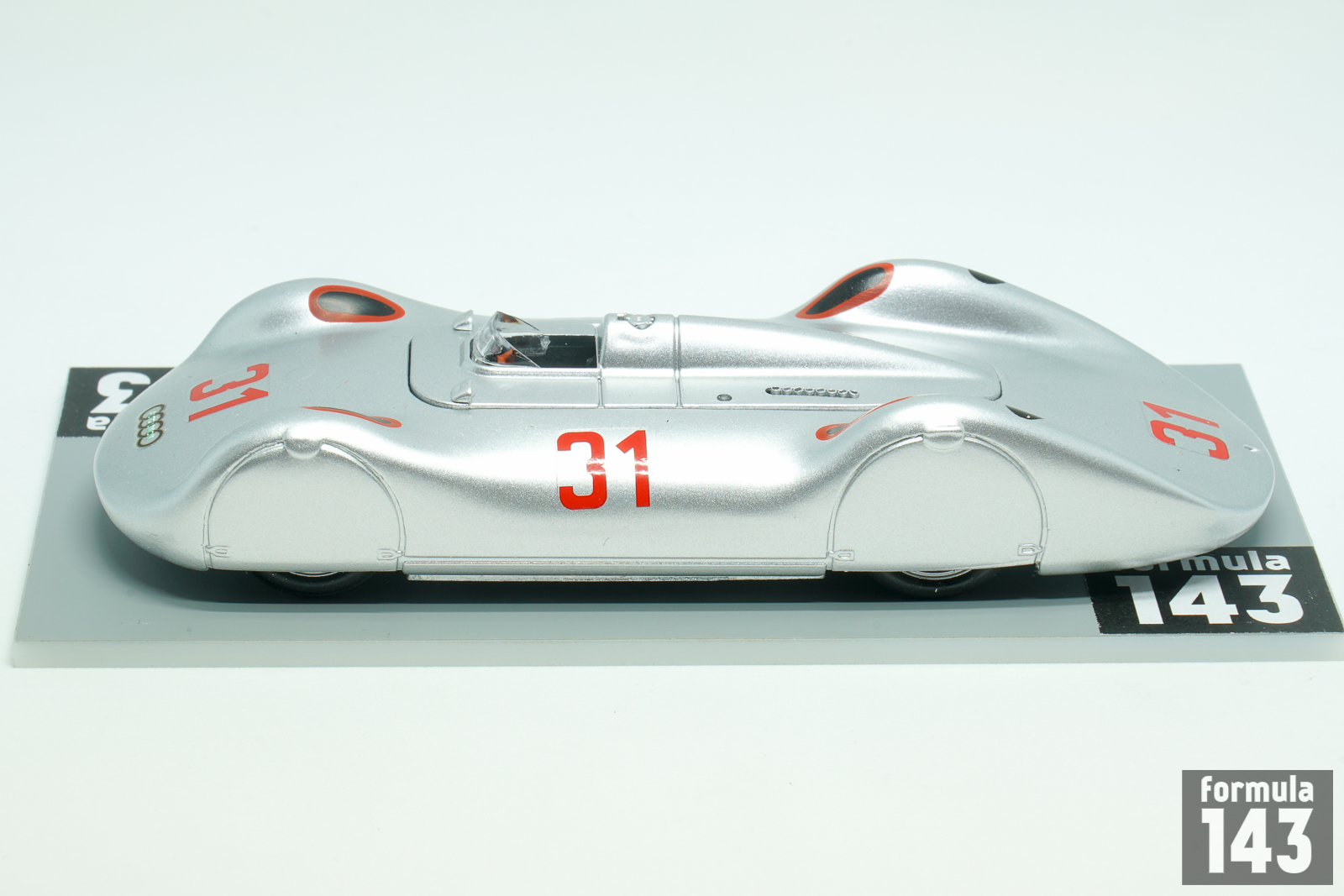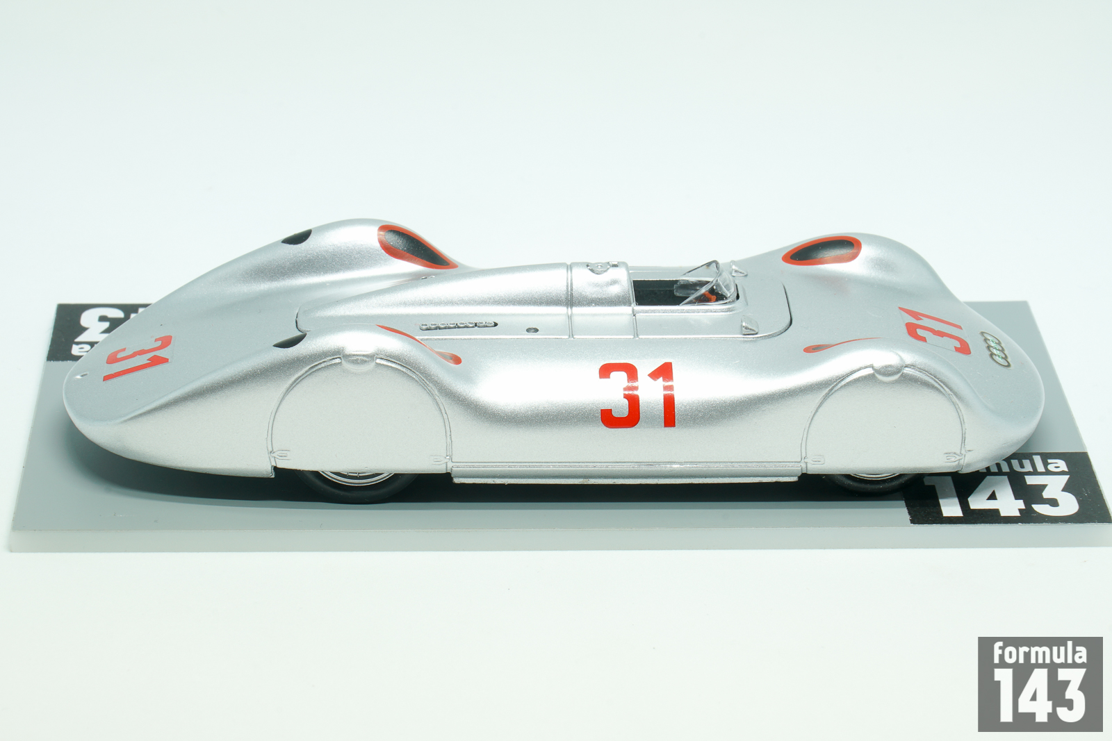 The third evolution of Auto Union race cars, Type-C, appeared in 1936 and was designed by Ferdinand Porsche. V16 engine with Roots supercharger was extended to 6005 cc and was capable of 520 bhp at 5000 rpm. It was the largest possible design within the 750-kg weight limit. New Auto Union car became more competitive than B-type of 1935, and allowed Rosemeyer to win the European Drivers’ Championship in 1936, established by the Association Internationale des Automobile Clubs Reconnus (AIACR). Auto Union continued to use C-type in 1937, but with less success. Couple of the C-type in 1937 were built in a streamlined version in order to use it for speed record attempts. The racing debut of this streamliners was at Avusrennen 1937, where it were driven by Bernd Rosemeyer and Italian Luigi Fagioli, who joined Auto Union from Mercedes. Italian had the privilege to be the only driver who drove for both Mercedes-Benz and Auto Union, the major rivals of the Golden Era of 1934 – 1939. At Avus Fagioli retired in the preliminary heat due to broken transmission. Rosemeyer was 2nd in Heat 1 and fourth in the final.