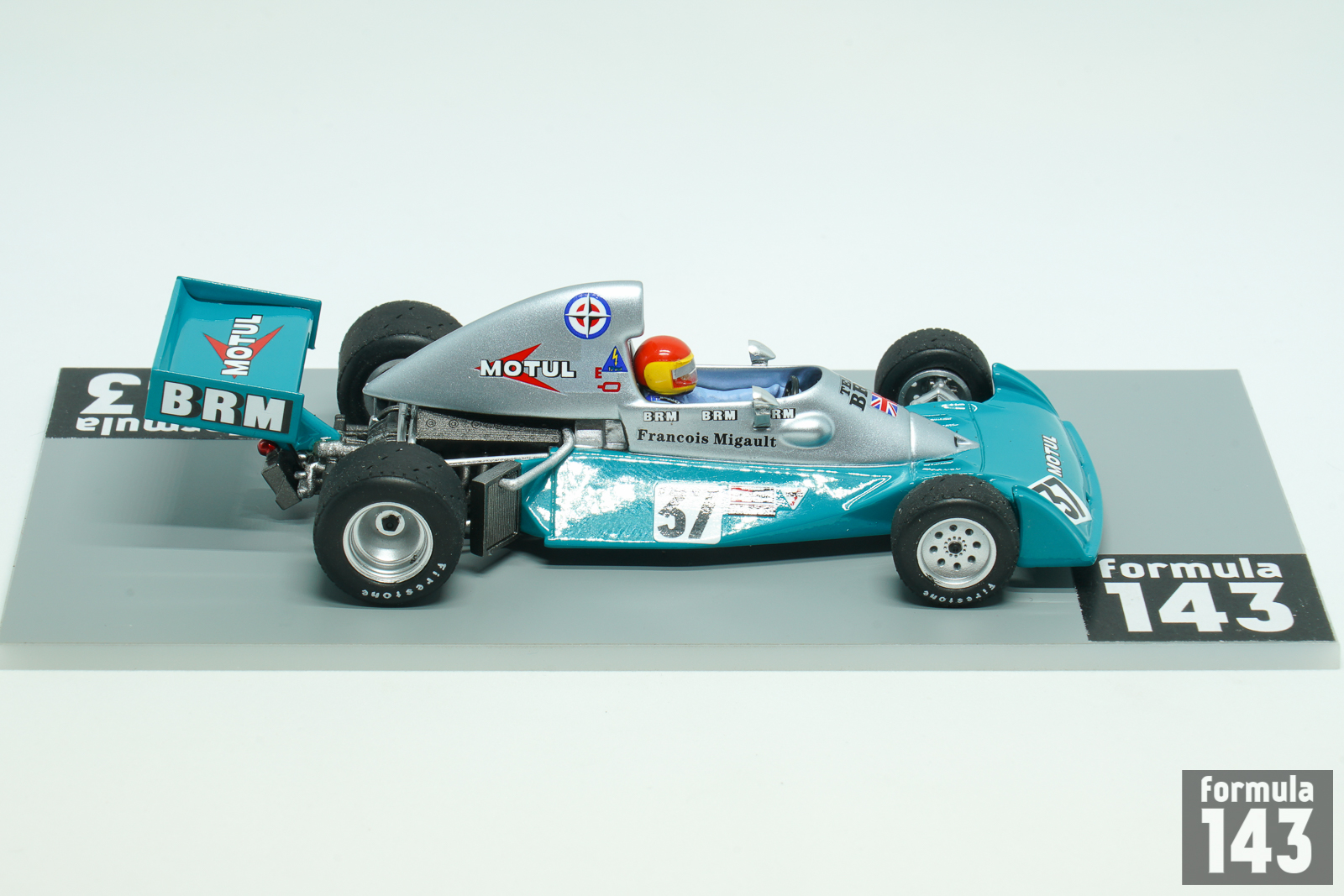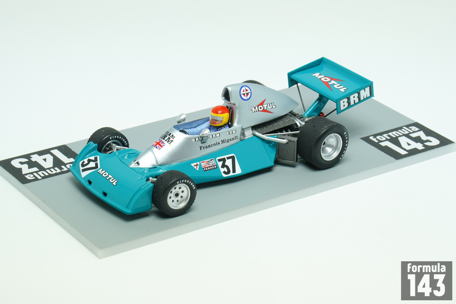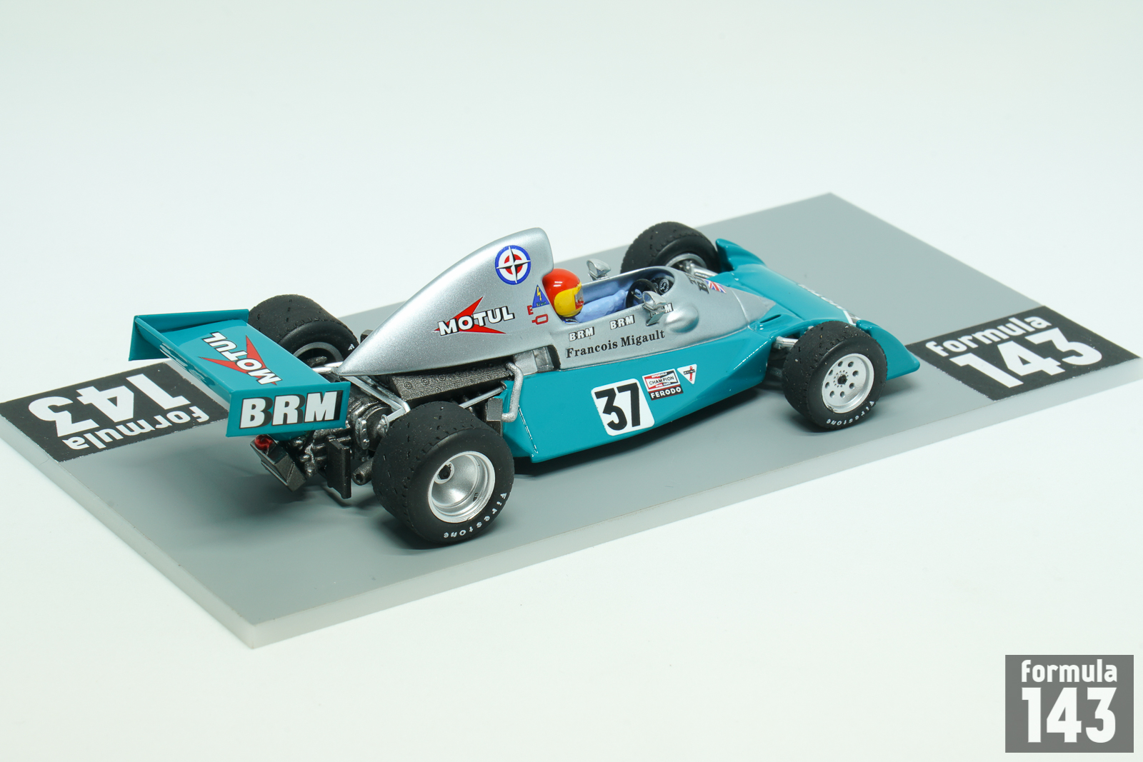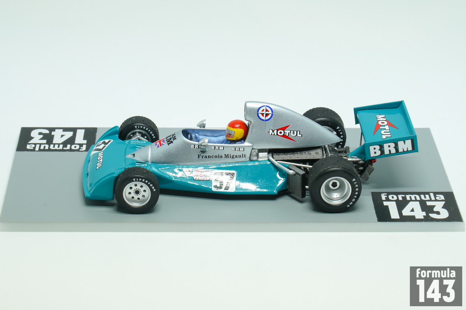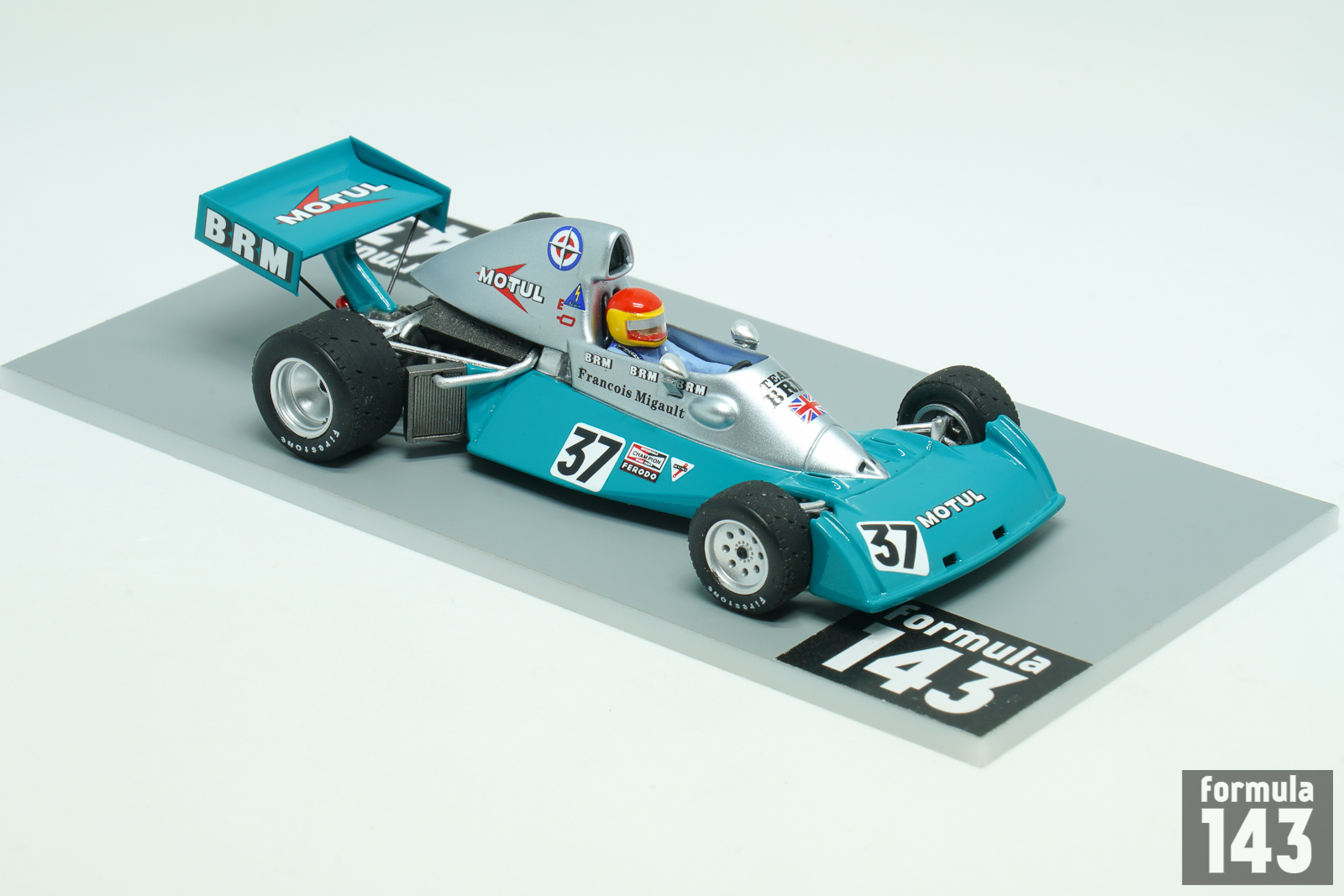 The P201 was the new BRM car designed by Mike Pilbeam in 1974, which replaced Tony Southgate’s P160 raced since 1971. The car was powered by the same BRM 2,998 cc V12 engine as its predecessor, and featured a triangular monocoque, hip-level radiators, outboard front springs and inboard brakes. French motor oil company Motul backed the team in 1974, and the works team was renamed as Team Motul BRM. French influence resulted in the drivers lineup consisted of three French musketeers – Jean-Pierre Beltoise, Henri Pescarolo and Francois Migault. Beltoise was most successful among them and scored all 10 points for the team in 1974, including last BRM podium in F1 in the South African Grand Prix, the debut race for P201. Pescsrolo’s best was 9th place in Argentina, and Migault finished 14th in France as his highest season placing. Team used dark green livery in Argentina and Brazil, first two rounds of the championship, before switching to combination of pale green and silver colors for the remainder of the year.
