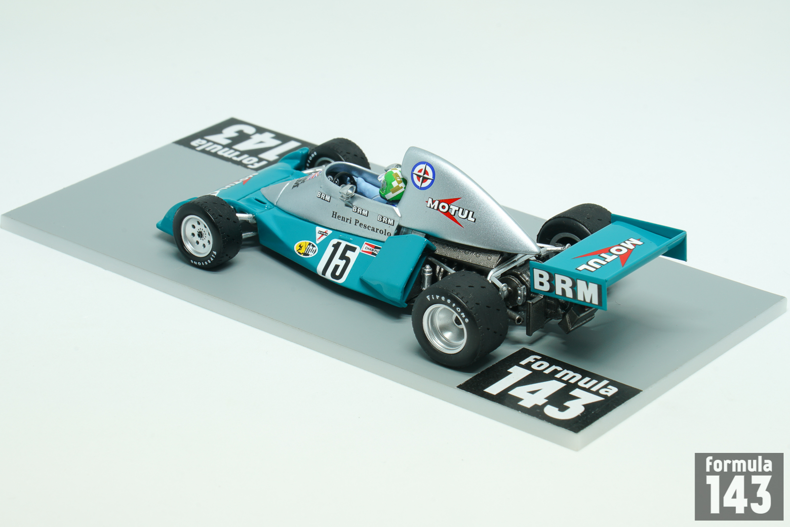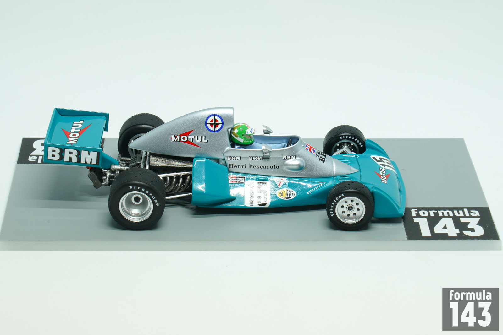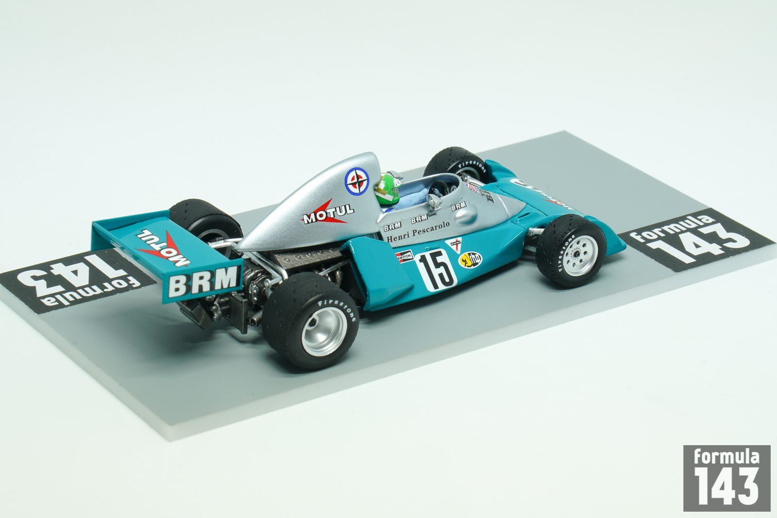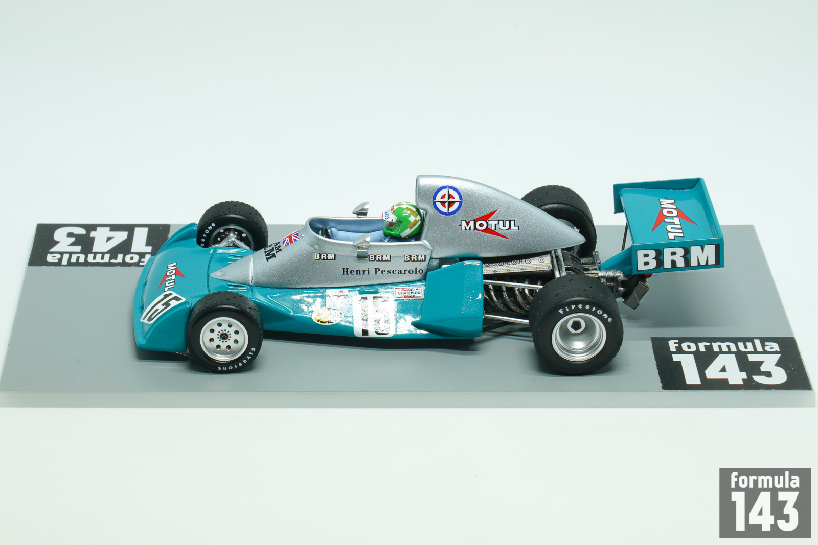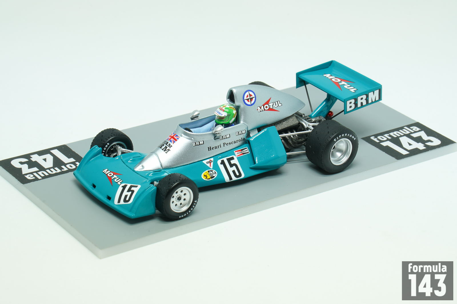 The P201 was the new BRM car designed by Mike Pilbeam in 1974, which replaced Tony Southgate’s P160 raced since 1971. The car was powered by the same BRM 2,998 cc V12 engine as its predecessor, and featured a triangular monocoque, hip-level radiators, outboard front springs and inboard brakes. French motor oil company Motul backed the team in 1974, and the works team was renamed as Team Motul BRM. French influence resulted in the drivers lineup consisted of three French musketeers – Jean-Pierre Beltoise, Henri Pescarolo and Francois Migault. Beltoise was most successful among them and scored all 10 points for the team in 1974, including last BRM podium in F1 in the South African Grand Prix, the debut race for P201. Pescsrolo’s best was 9th place in Argentina, and Migault finished 14th in France as his highest season placing. Team used dark green livery in Argentina and Brazil, first two rounds of the championship, before switching to combination of pale green and silver colors for the remainder of the year.