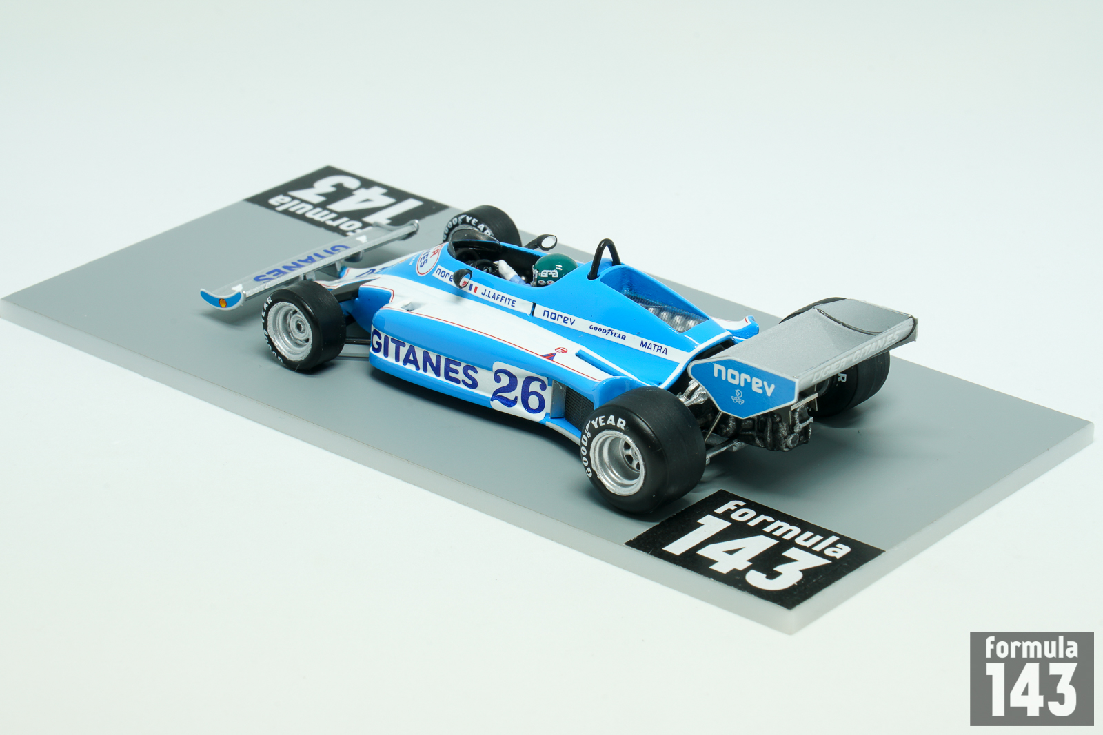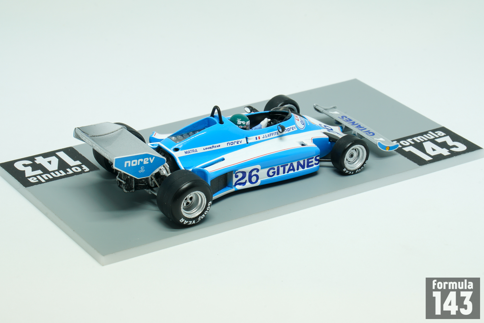 The JS7 was the second F1 car, after 1976 JS5, built by Guy Ligier’s team. The car was designed by Gérard Ducarouge, was powered by Matra V12 and followed the lines of JS5. Laffite won his and Ligier’s first Grand Prix race at Anderstorp in the 1977 Swedish Grand Prix. Second place in the Dutch Grand Prix and couple of other top-6 finishes slipped him to 10th and Ligier team to 8th in the Championship.