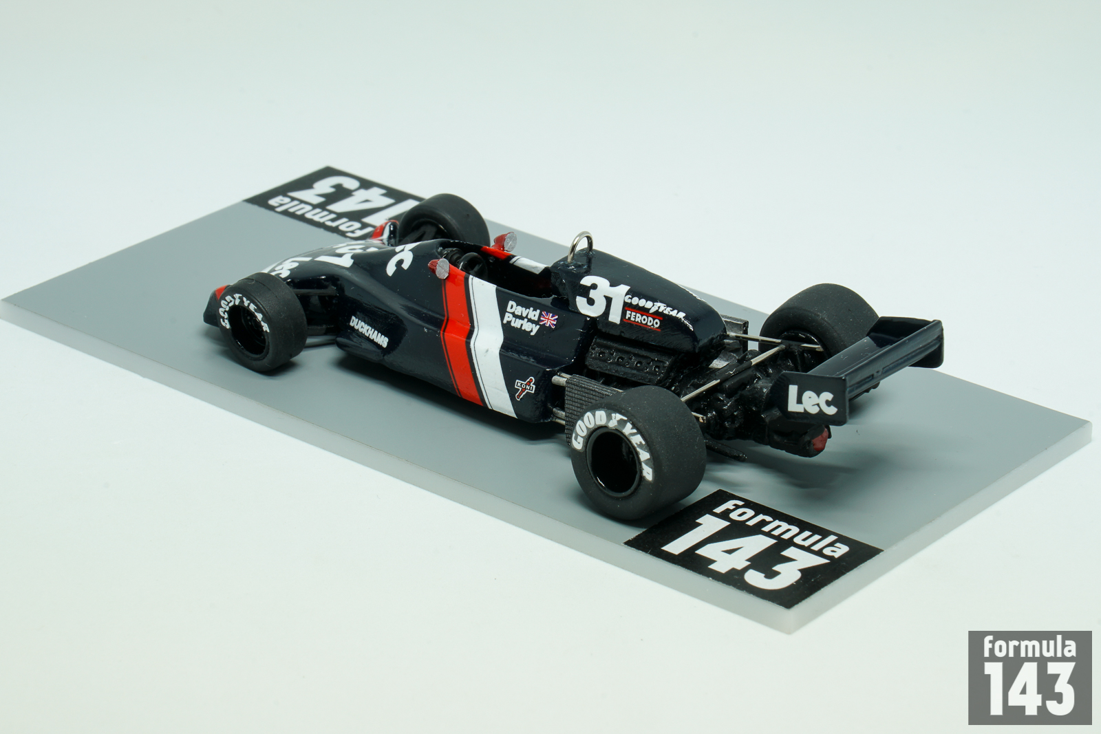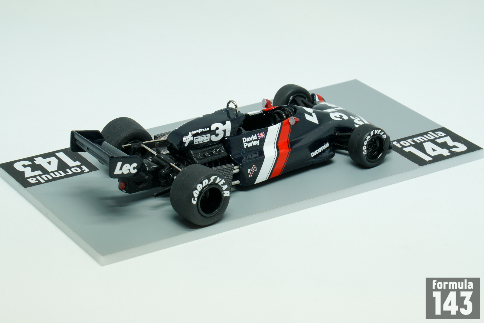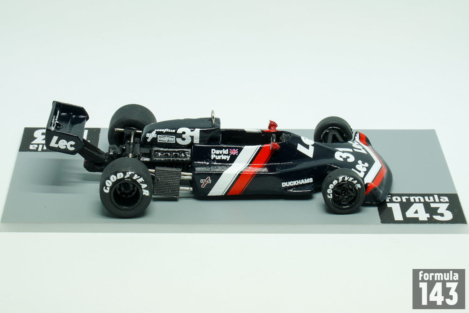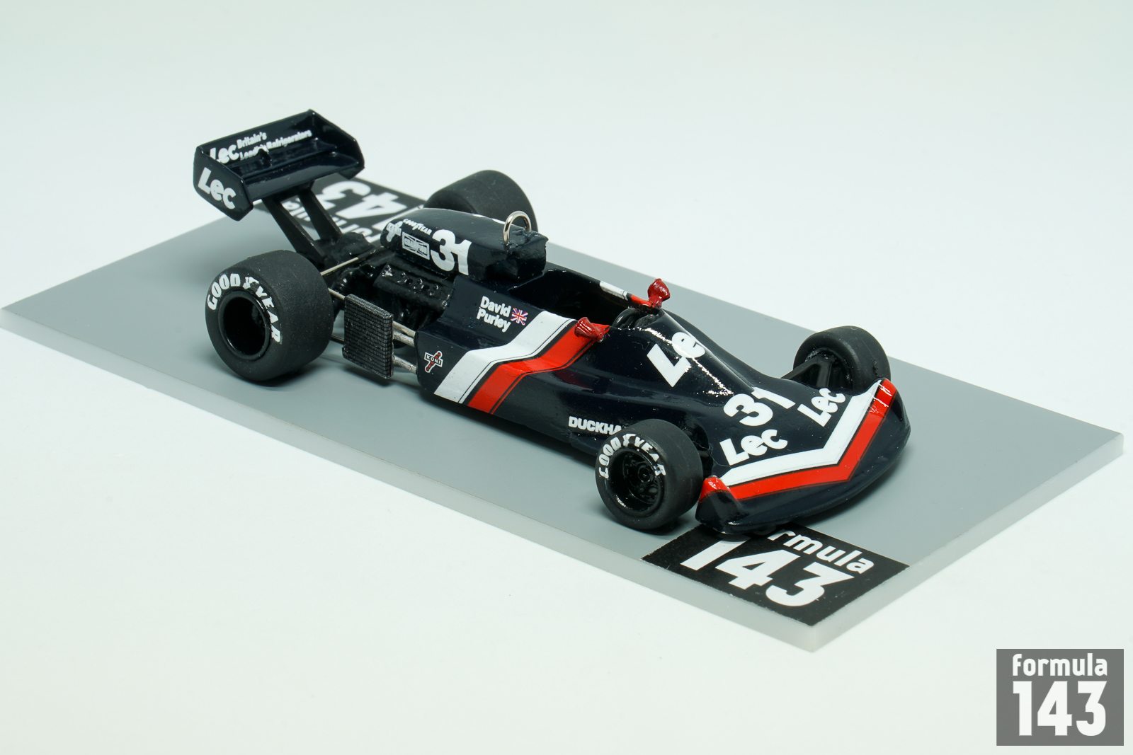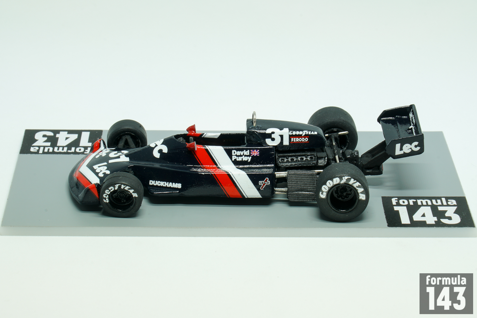 David Purley had a brief open-wheels formula career in the 1970s which included Formula 2, Formula 5000, British F1 and three partial seasons in Formula One World Championship. David’s racing exercises was backed by his family’s refrigeration company LEC Refrigeration, founded by his father Charles Purley. His first attempt in F1 is dated by 1973 when he hired a March 722 and started in four GPs with  LEC Refrigeration Racing. Next year Purley had a brief episode with Token, and after competing in Shellsport British F1 series in 1976, he returned to F1 WDC with his own LEC chassis designed by Mike Pilbeam and run by Mike Earle. LEC CRP1was typical kit-car of the period with aluminium monocoque, Cosworth DFV engine and Hewland gearbox. The car debuted at XII Race of Champions,  a non-championship Formula One race held at Brands Hatch on 20 March 1977. Purley finished 6th in a field of 17 F1 cars. Later LEC appeared in its first World Championship round, in the Spanish GP at Jarama, where Purley failed to qualify. Then he finished 13th in Belgium (after briefly running second, in freak conditions), 14th in Sweden and retired in France. His very heavy crash in practice for the British Grand Prix at Silverstone, when the throttle slides jammed open, put the end David’s racing career. He survived an estimated 179.8 g when he decelerated from 173 km/h to 0 in a distance of 66 cm. For many years, this was thought to be the highest g-force ever survived by a human being. He suffered multiple fractures to his legs, pelvis and ribs. He died in a plane crash, having retired from motorsport and taken up aerobatics, in 1985.