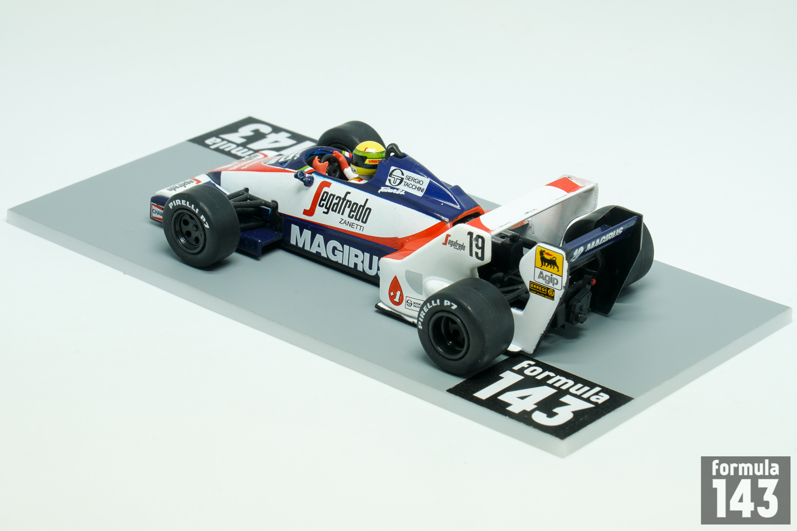 Toleman TG183 designed by Rory Byrne in 1982 was distinctive due to twin rear wings and front wing mounted radiators. The updated version of the car, designated TG183B, was introduced in 1983 and raced in 1983 and in first four rounds of 1984 before new TG184 appeared. In 1984 Ayrton Senna made his debut in the Formula 1 championship in Toleman alongside former FIM 350cc and Formula 750 motorcycle World Champion Johnny Cecotto from Venezuela. Ayrton finished sixth in Brazilian and USA-West Grand Prix, and the 1984 San Marino Grand Prix saw the only time that Ayrton Senna would fail to qualify for a Grand Prix. The team switched to TG184 since French Grand Prix, and Senna scored three podiums and finished the season 9th with 13 points.