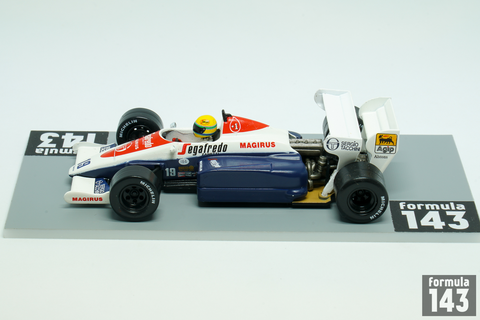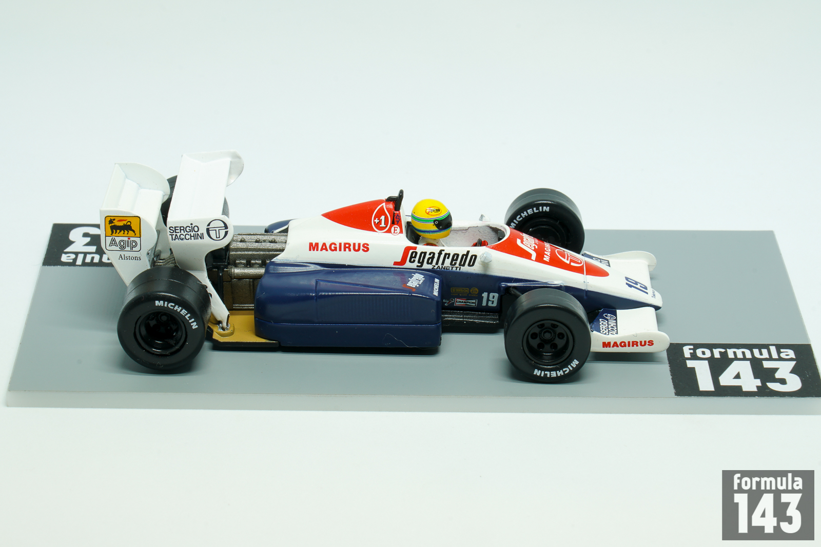 TG184, the further evolution of TG183, was used by Toleman team during the majority 1984 season. It was the car which made the Ayrton Senna’s glory as the “Rainman” after his fantastic performance in a wet Monaco Grand Prix where Senna almost won when the race was stopped due to adverse conditions. Senna’s teammate former FIM 350cc and Formula 750 motorcycle World Champion Johnny Cecotto from Venezuela achieved 9th place in Canada as his best finish of the season.