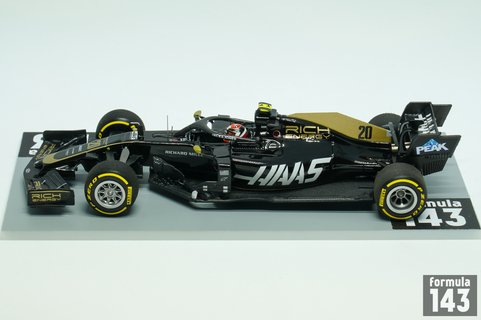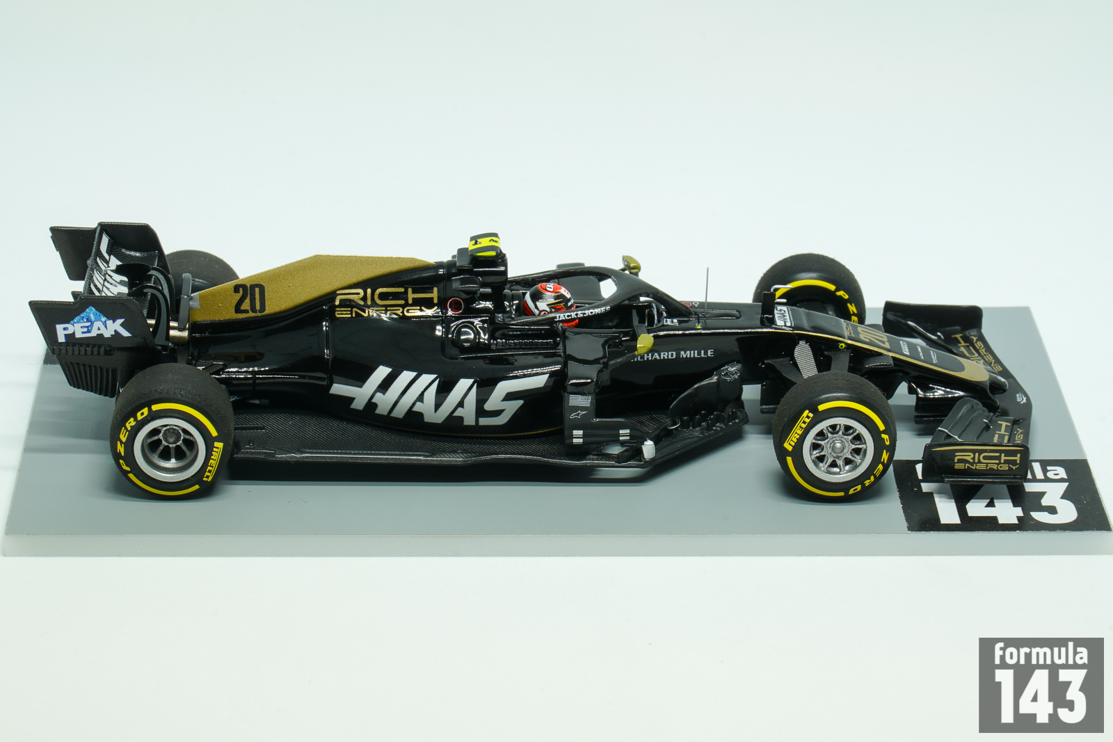 The 2019 Haas car incorporated the resplendent black and gold colors of Rich Energy, the premium British energy drink, new title sponsor of the Haas F1 Team. The car designed by Rob Taylor and Ben Agathangelouto differed from its 2018 predecessor mainly by the aerodynamic elements due to changed regulations. The simplified wider and higher front and rear wings were aided for better slipstreaming and promotion of closer racing. Driven by Romain Grosjean and Kevin Magnussen, the VF-19 rarely was able to finish in top-10. Magnussen started the season by immediately scoring a 6th place finish at the Australian Grand Prix, but then achieved only three more small point-scoring results, and ended the season 16th with 20 points, while Grosjean was 18th with 8 points.