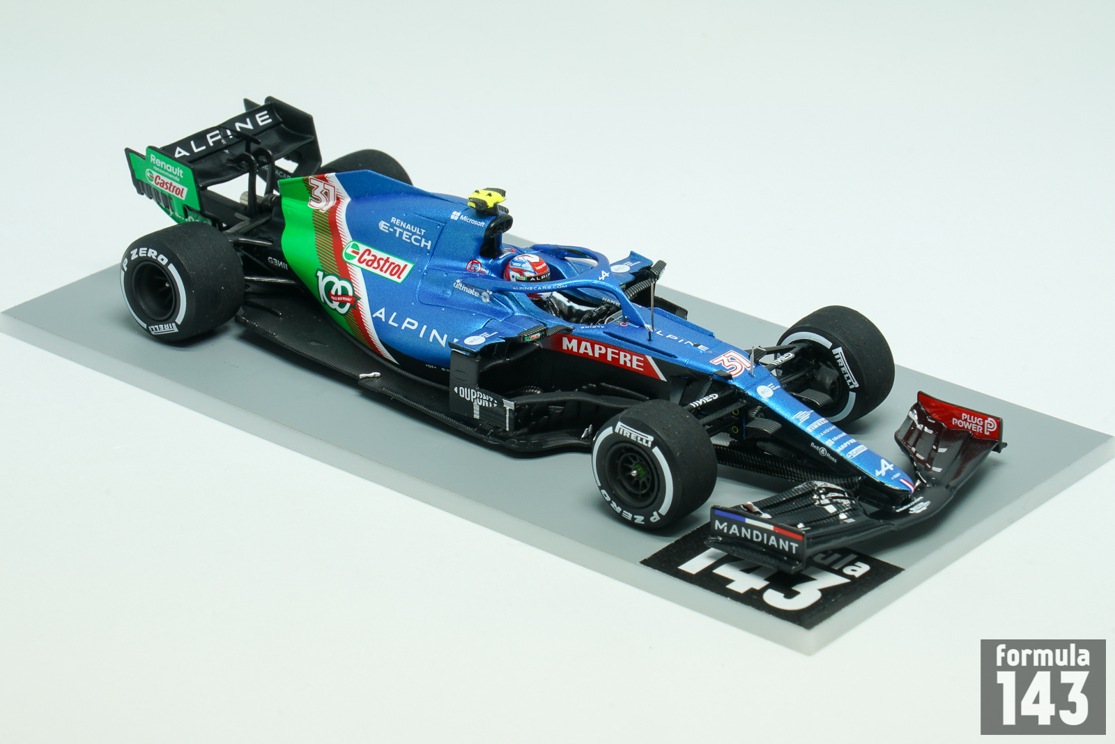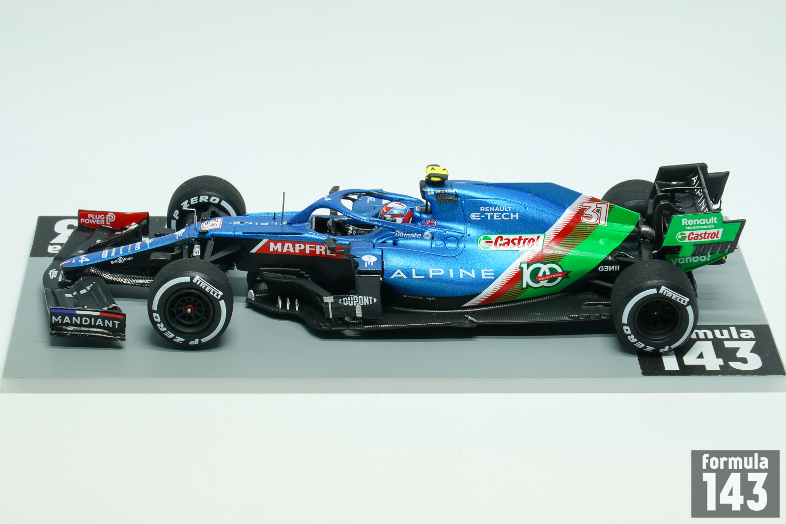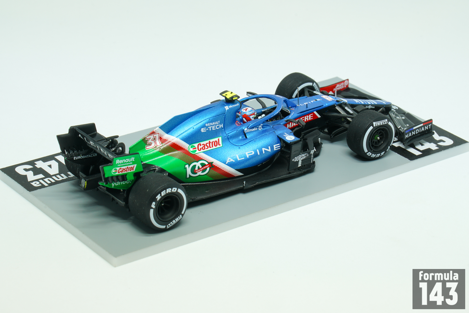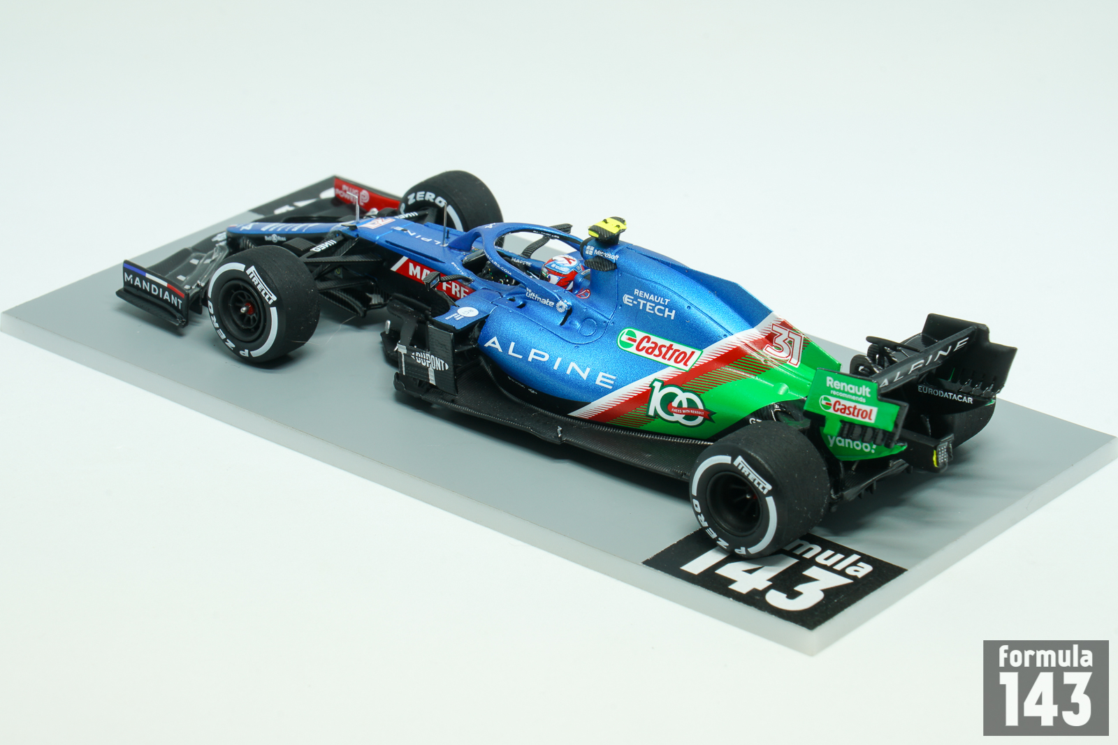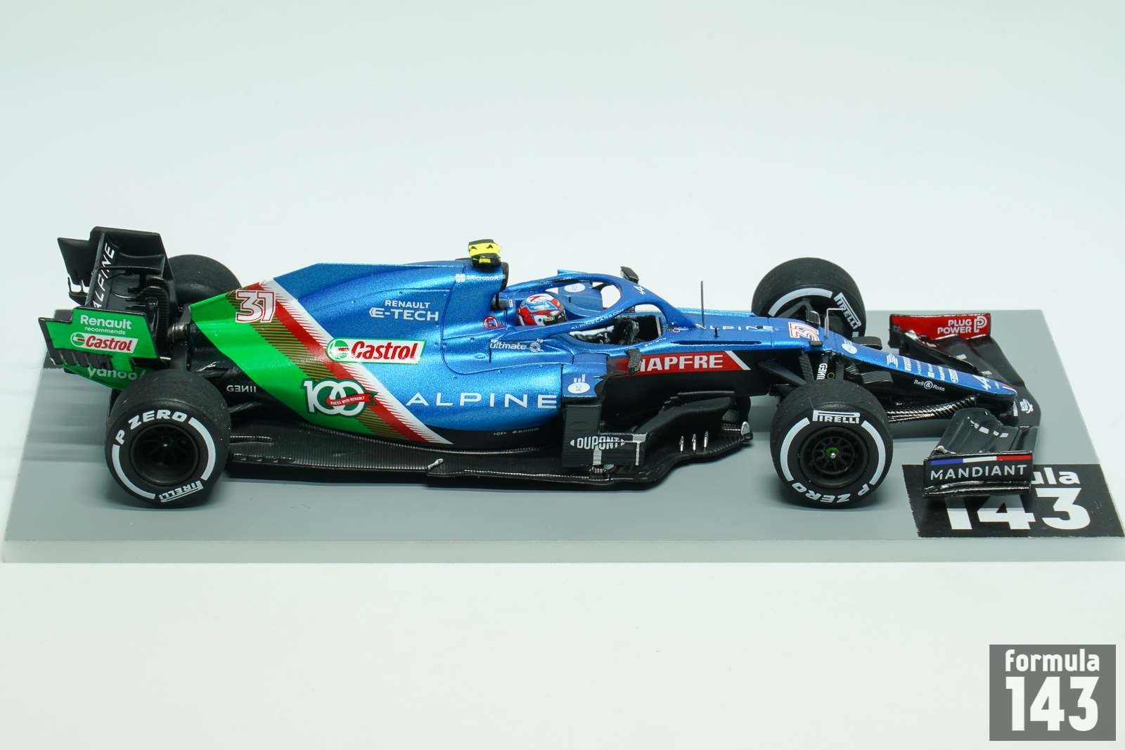 Before the 2021 season Renault F1 team was renamed Alpine. The cars were run in French blue with a French flag pattern towards the rear. The A521 was just a slight modification of Renault R.S. 20 from the previous season. The car was driven by Fernando Alonso, marking his return to the sport, and Esteban Ocon. Fernando’s best result was 3rd place at the Qatar Grand Prix, and he finished the season 9th with 81 points. Esteban Ocon was 11th with 74 points. But he brought the only victory of the season to the French team winning the Hungarian Grand Prix – with the very significant help from Alonso, who held Lewis Hamilton back for a long time. To celebrate 100 Grand Prix as part of their partnership with lubricant supplier Castrol, at the Saudi Arabian Grand Prix both of Alpine’s A521 cars featured a green ‘100 Races With Renault’ design on the engine cover alongside a ‘Renault recommends Castrol’ logo on the rear wing. Castrol has supplied Alpine with their engine oils and lubricants since 2017.
