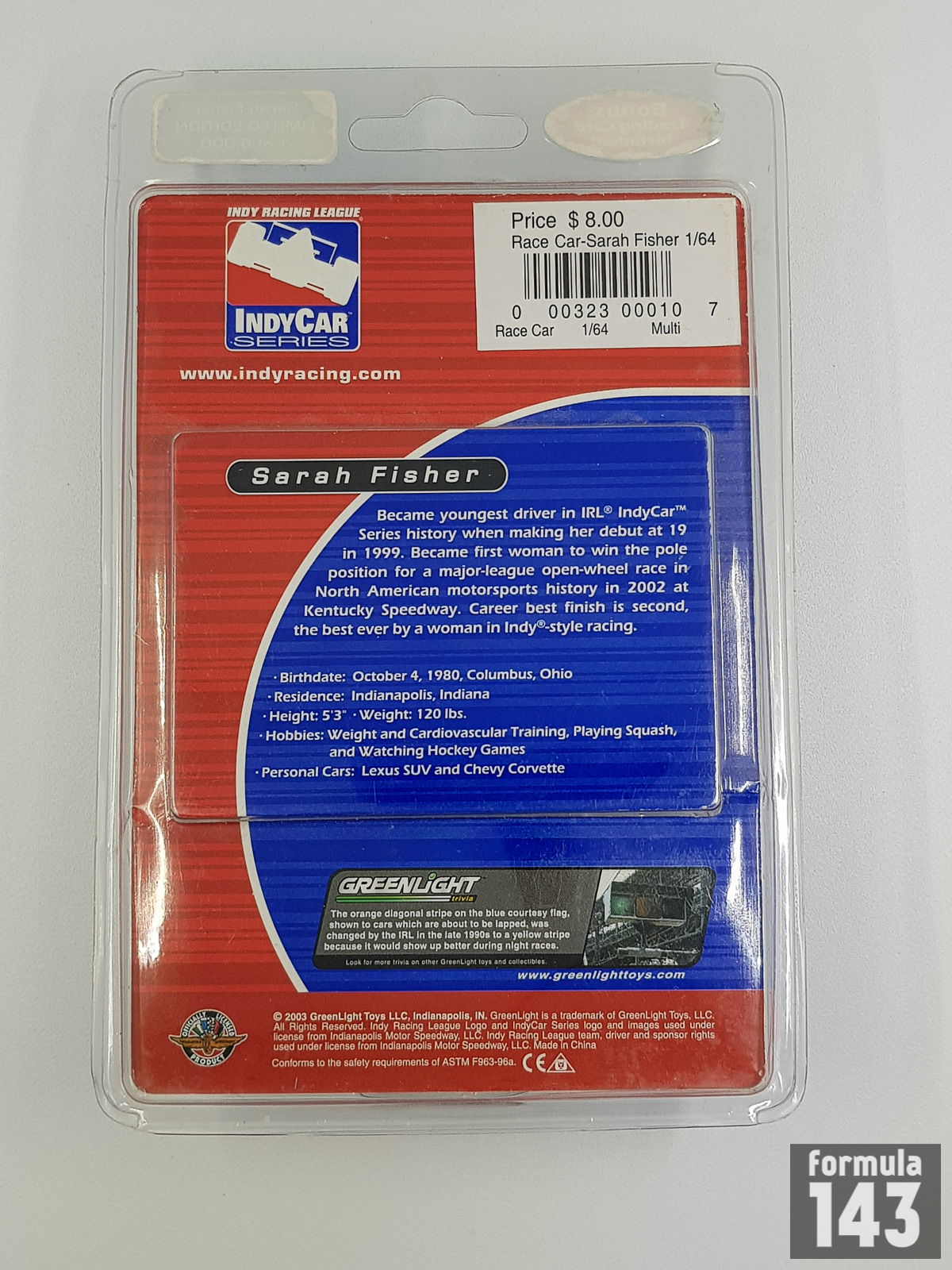 In the 2003 season Sarah Fisher drove No. 23 Dallara IR-03 – Chevrolet for Dreyer & Reinbold Racing. At Phoenix International Speedway, the year’s second race, she took her only top-ten finish of 2003, placing eighth. Sarah finished her 14-race season 18th in the points standings, scoring 211 points.