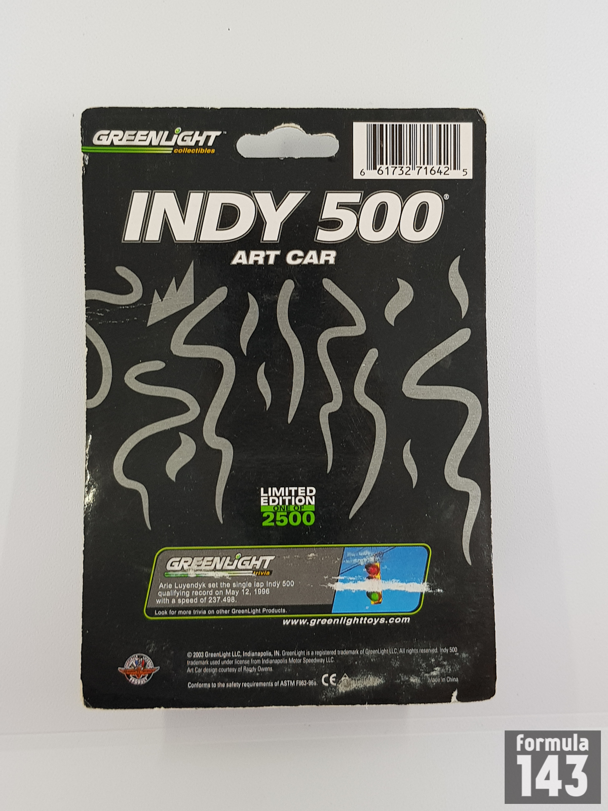 In the 2003 season, along with the models of real Indycars, Greenlight produced a car dedicated to the Indy 500 race in a fantasy livery, called Indy 500 Art Car.
