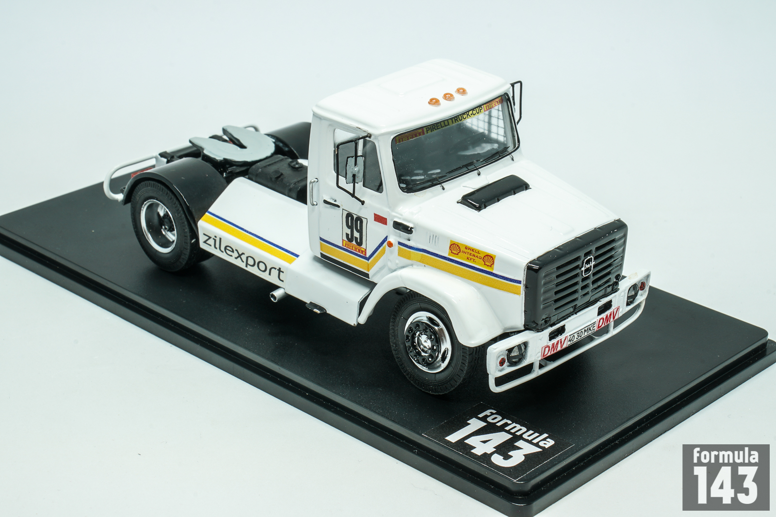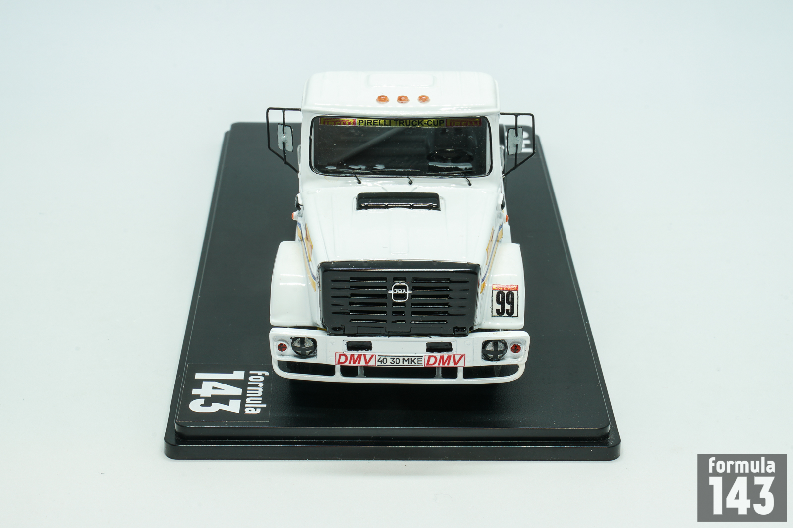 Russian ZiL (Zavod imeny Lichacheva, Likhachov Plant), was one of the biggest truck manufacturer in the Soviet Union. In the late 1980s – early 1990s ZiL, as some other Russian truck builders, played with the truck racing, entering the European truck racing scene. ZiL debuted in 1989 and raced as works team until 1994, longer than other ex-Soviet truck teams. Obviously, the entry gate for ZiL was the races held in socialist Hungary, were MAZ debuted in 1987 and KAMAZ in 1988. Two ZiL-4421S (Sport) trucks driven by Nikolay Ivanov and Andrey Puzyrev started in the 1989 Hungarocamion Truck Trophy, 3rd round of the 1989 ETRA Championship. There were a lot of Eastern Block trucks and drivers at the Hungaroring including Soviet MAZ, KAMAZ and ZIL, Hungarian Raba, Polish Jelcz and Star, Yugoslavian FAP. Ivanov finished 21st and last in the first race of Class A and retired in the second. Puzyrev did not finish in both heats. Later that season Puzyrev and Alexander Markin also started in the non-championship Pirelli Truck Cup held at Hockenheim in October. The scale model made by Ukrainian workshop AvtoBuro from Kharkov represents the truck driven by Puzyrev at this Hockenheim race.