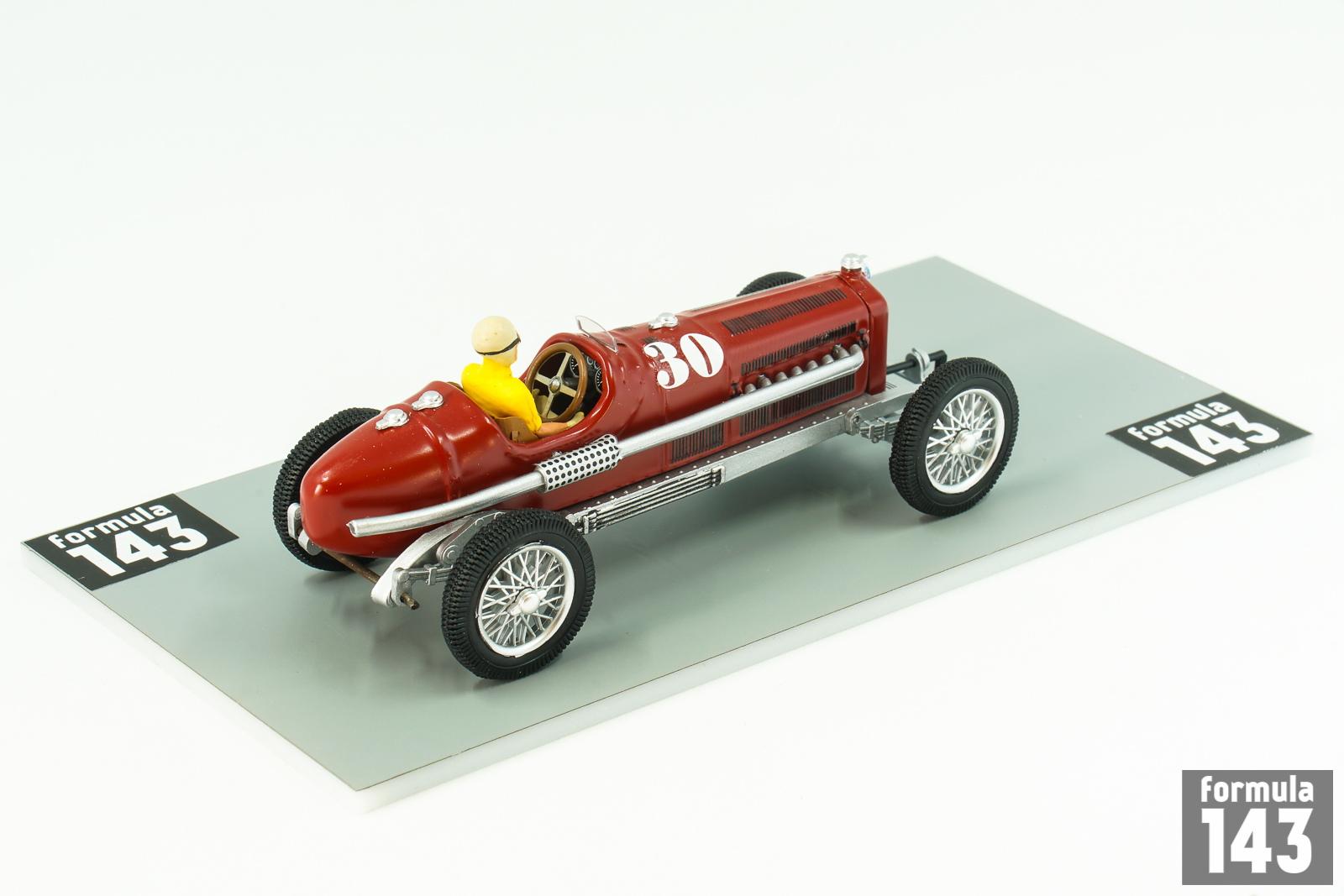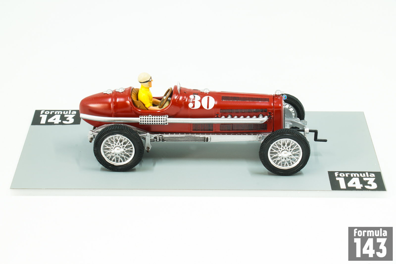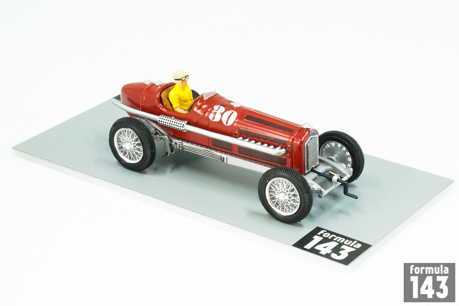 The P3 Monoposto was the first genuine single-seat racing car in Grand Prix racing. It was powered by an eight-cylinder engine built around two four-cylinder blocks, each fed by its own Roots supercharger. The car designed by Vittorio Jano was introduced in June, halfway through the 1932 Grand Prix season in Europe, winning its first race at the hands of Tazio Nuvolari, and going on to win 6 races that year driven by both Nuvolari and Rudolf Caracciola, including all 3 major Grand Prix in Italy, France and Germany.