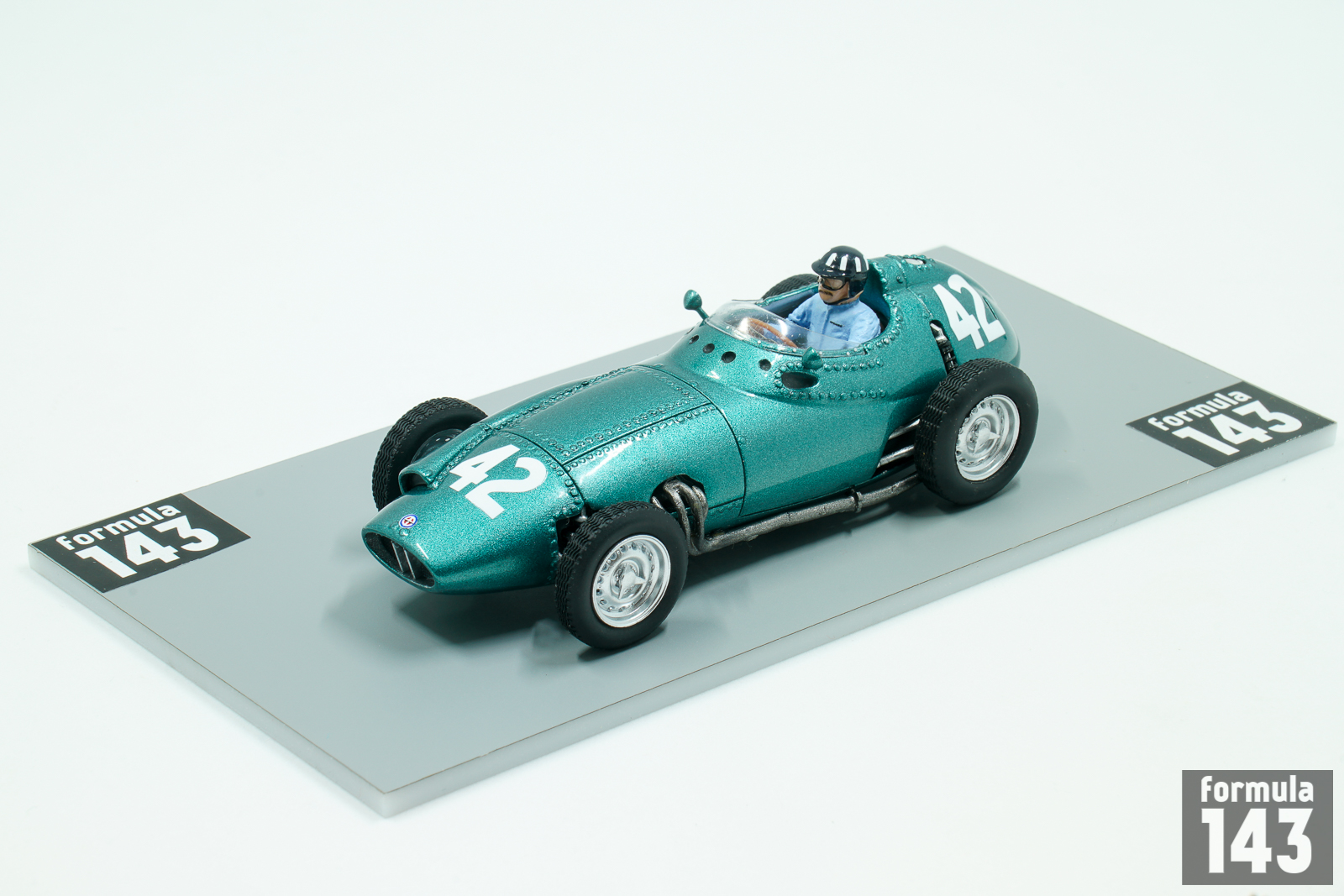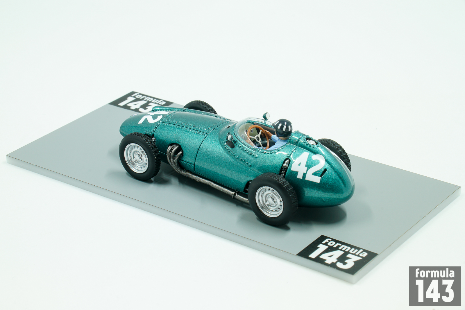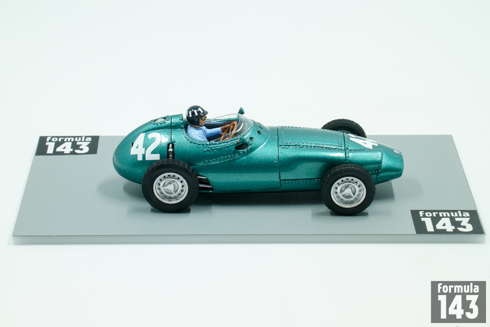 The Type 25 was BRM’s second car after Type 15 V16 designed in 1950. The P25 began racing in non-championship events in September 1955, and was used by works team until beginning of the 1960 season. The car designed by Tony Rudd used an extremely oversquare (4.05 x 2.95 in, 102.87 x 74.93 mm) 2.5 L atmospheric four-cylinder engine designed by Stewart Tresilian. The P25 was initially unsuccessful, not winning a race until a Jo Bonnier’s victory at the Dutch Grand Prix in 1959.