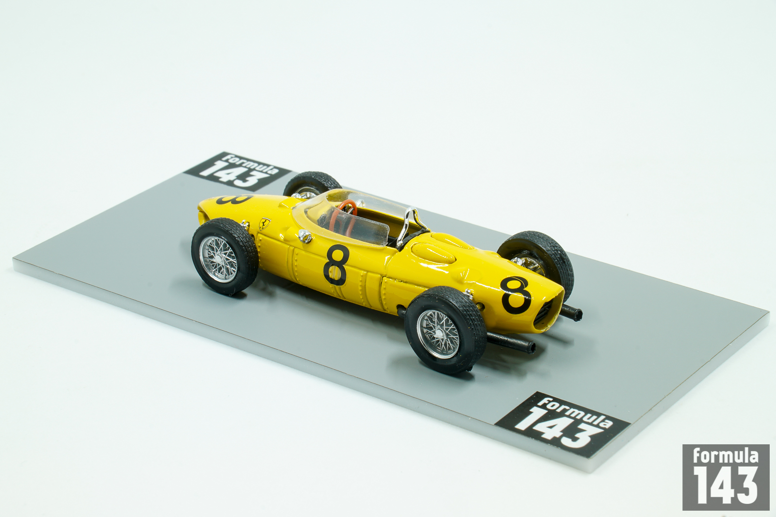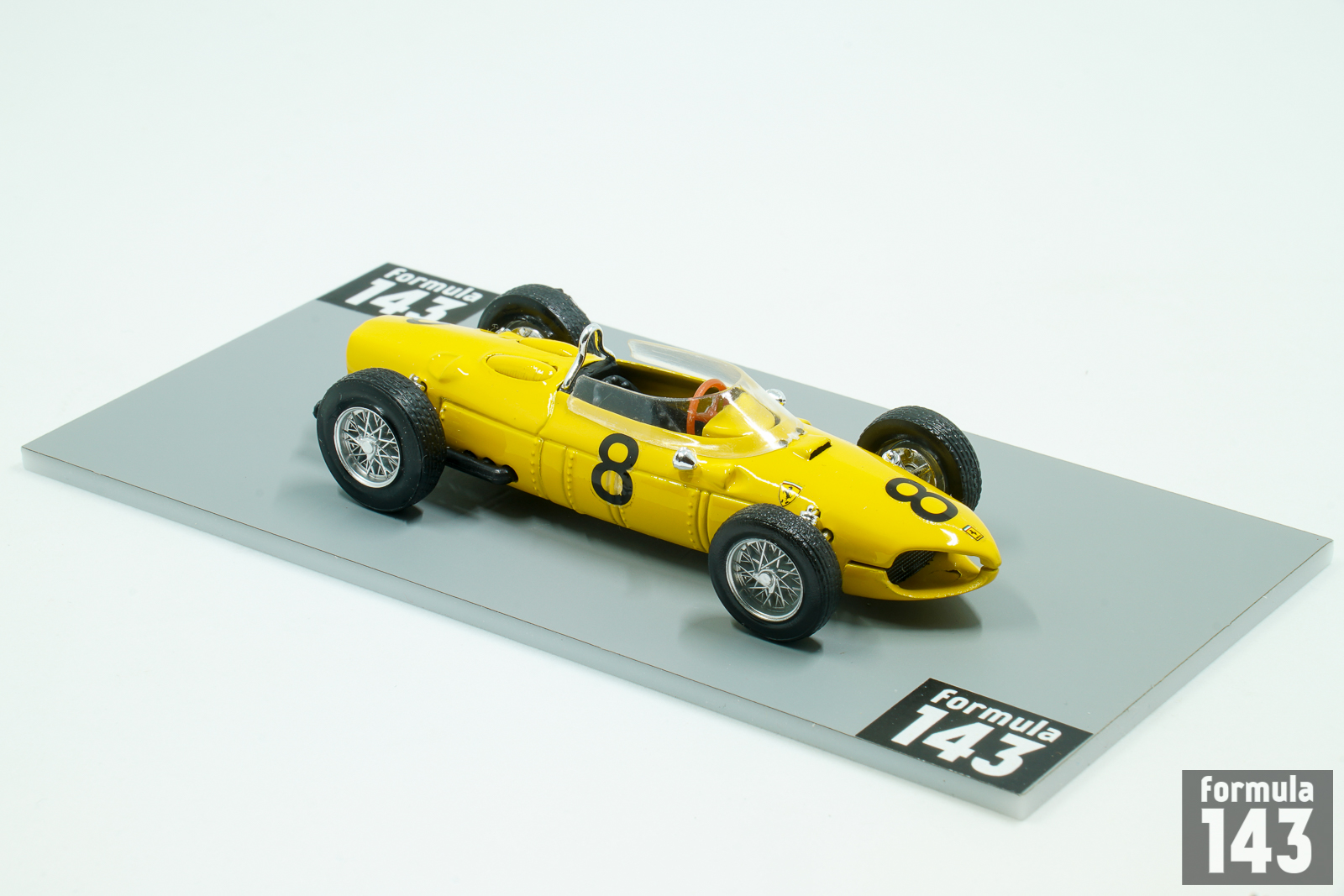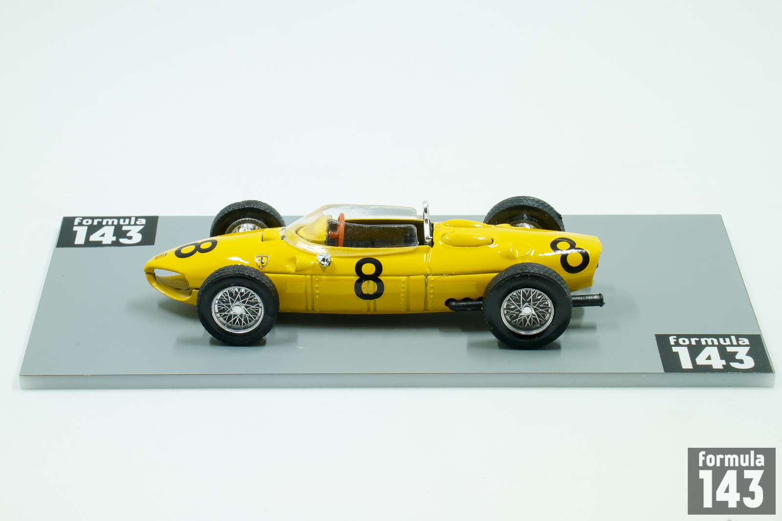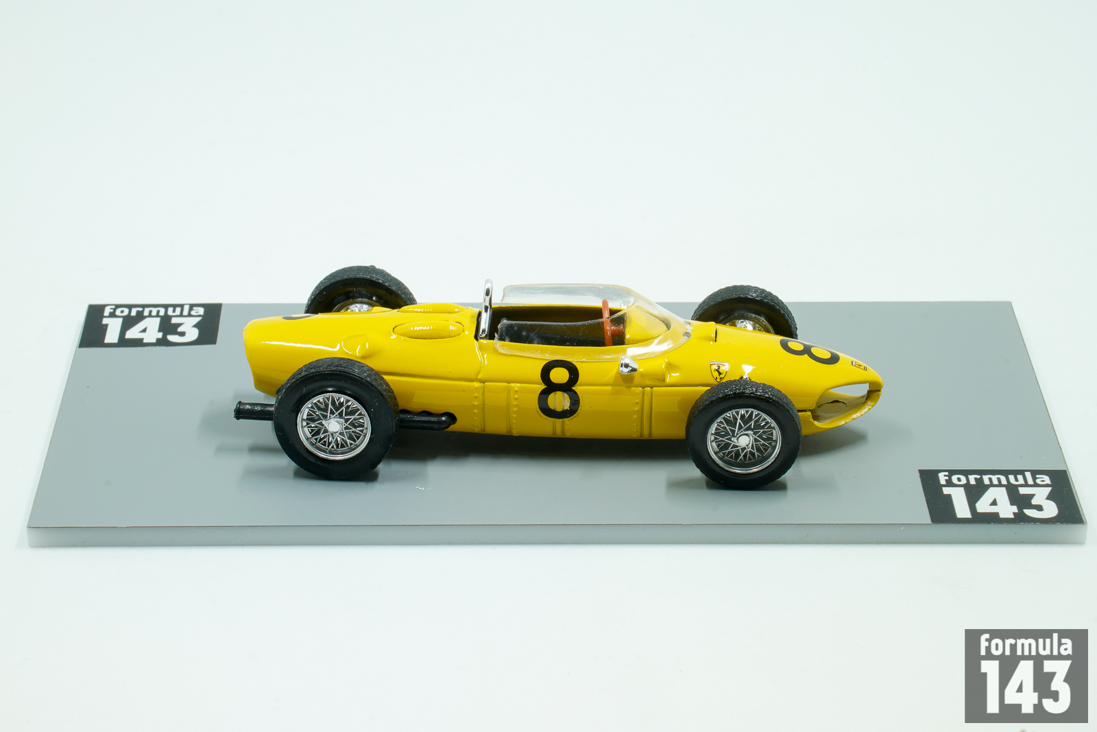 Scuderia Ferrari entered fourth works car for Olivier Gendebien for the 1961 Belgian Grand Prix. Three cars driven by Ginther, Phil Hill and von Trips were painted red in the tradition of the national racing colour of Italy, and Gendebien’s car was painted in a Belgian racing yellow. Apart from two NART entries in the 1964 season this was the last time a Ferrari car wore other than the traditional red colour in Formula One. Belgian driver set the 3rd best practice time and finished in 4th position behind tree other Ferrari cars.