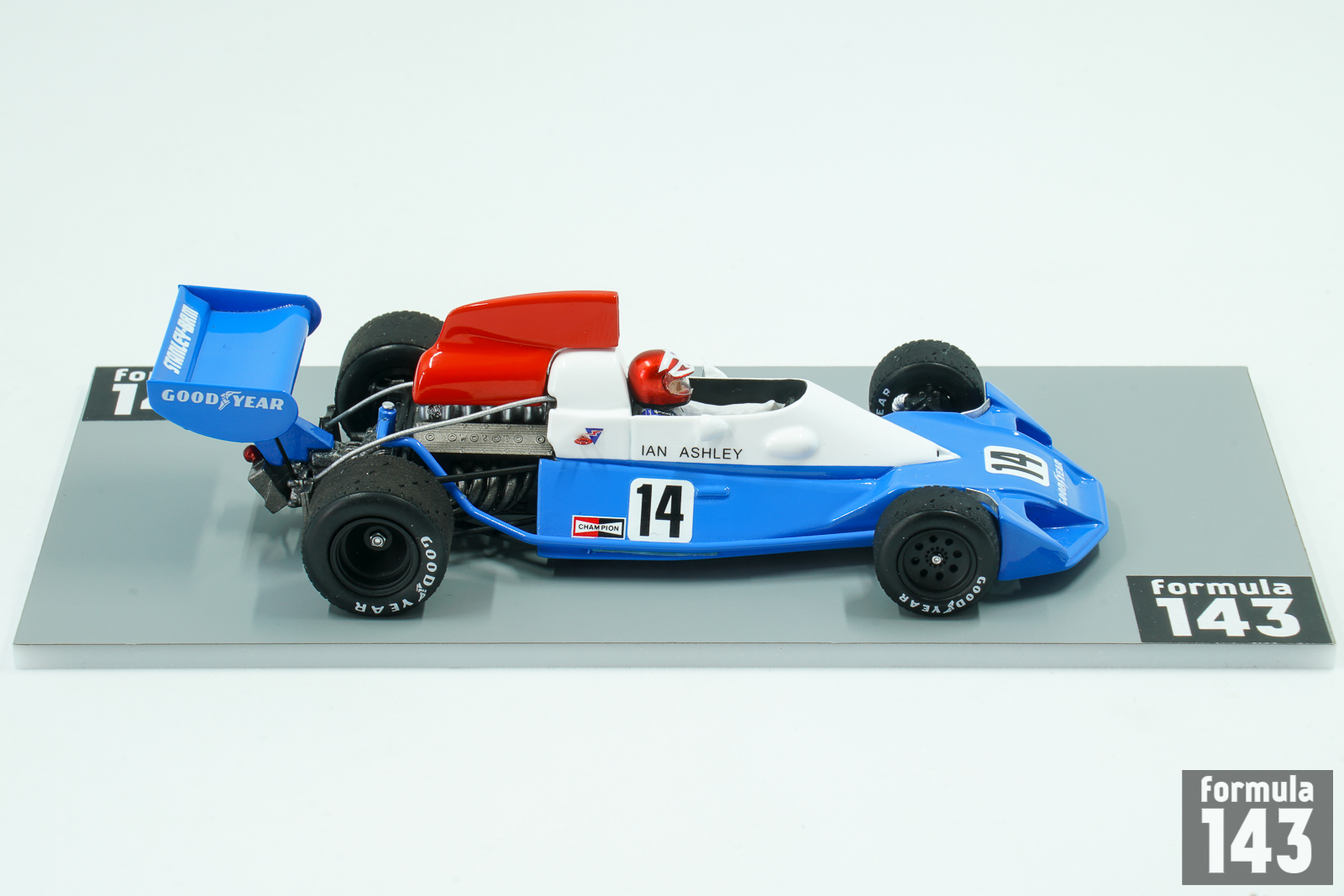 The BRM P201 was a compact F1 car designed by Mike Pilbeam and featured angular flanks terminating in prominent radiatots and a deep cockpit surround. Elderly BRM P200 V12 engine powered the car. Jean-Pierre Beltoise placed the car second in the car’s debutr race, 1974 South African Grand Prix. The car races full seasons in 1974 and 1975 as Stanley-BRM. Upgraded to P201B specification, the car made only one appearance in each of the 1976 and 1977 seasons. At the 1976 Brazilian Grand Prix, British driver Ian Ashley qualified in 21st place and retired on lap three, with oil pump failure.