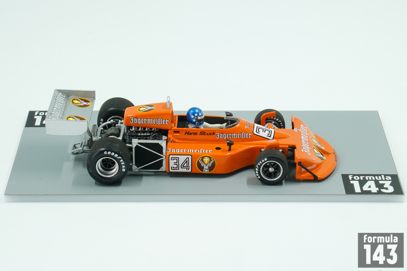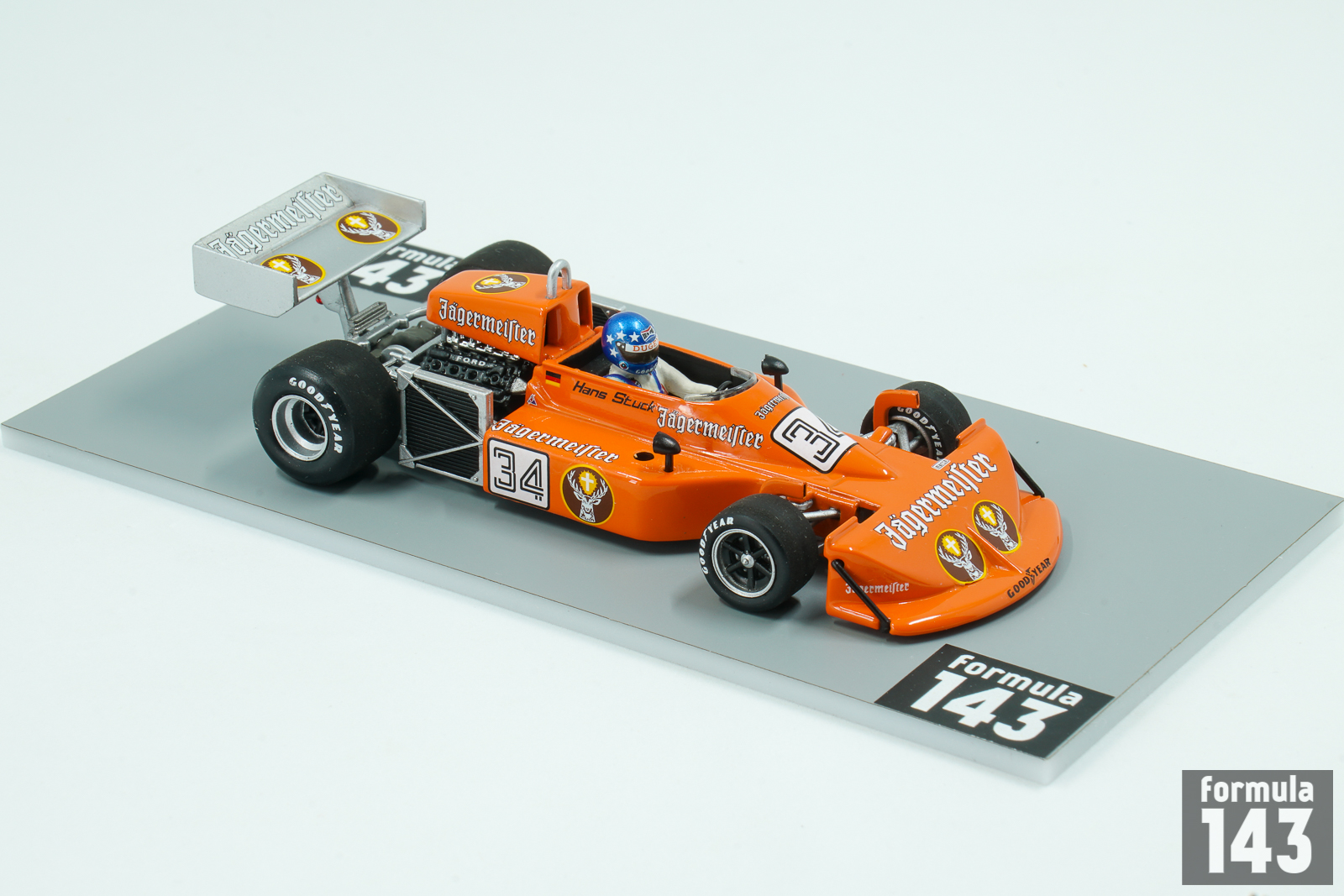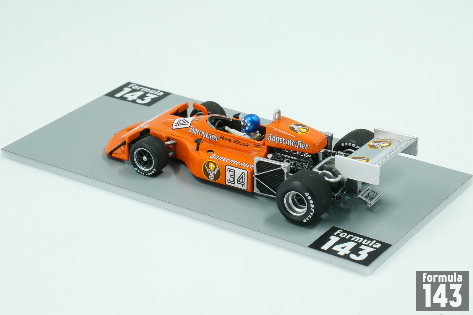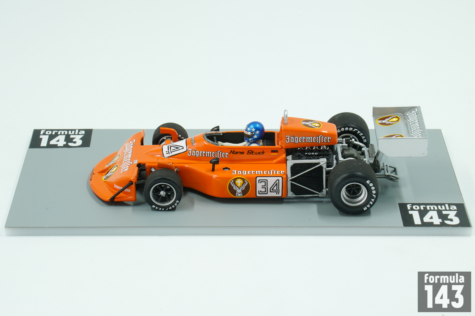 March F1 car for 1976 season was at the disposal of works March Engineering team with Ronnie Peterson, Hans-Joachim Stuck, Vittorio Brambilla, Arturo Merzario and Lella Lombardi. Due to a small budget, the cars tending to turn up in different liveries as race-by-race sponsorship deals were signed. Brambilla was entered under Beta sponsorship, Merzaio raced for Ovoro and Lombardi was sponsored by Lavazza. Car driven by Stuck in the German Grand Prix was sponsored by Jaegermeister. Stuck retired in Germany, but before he scored two 4th places in Brazil and Monaco, which gave him 8 points and 13th position in the final drivers’ standings of the season.