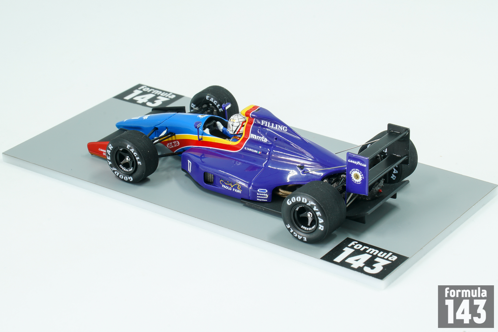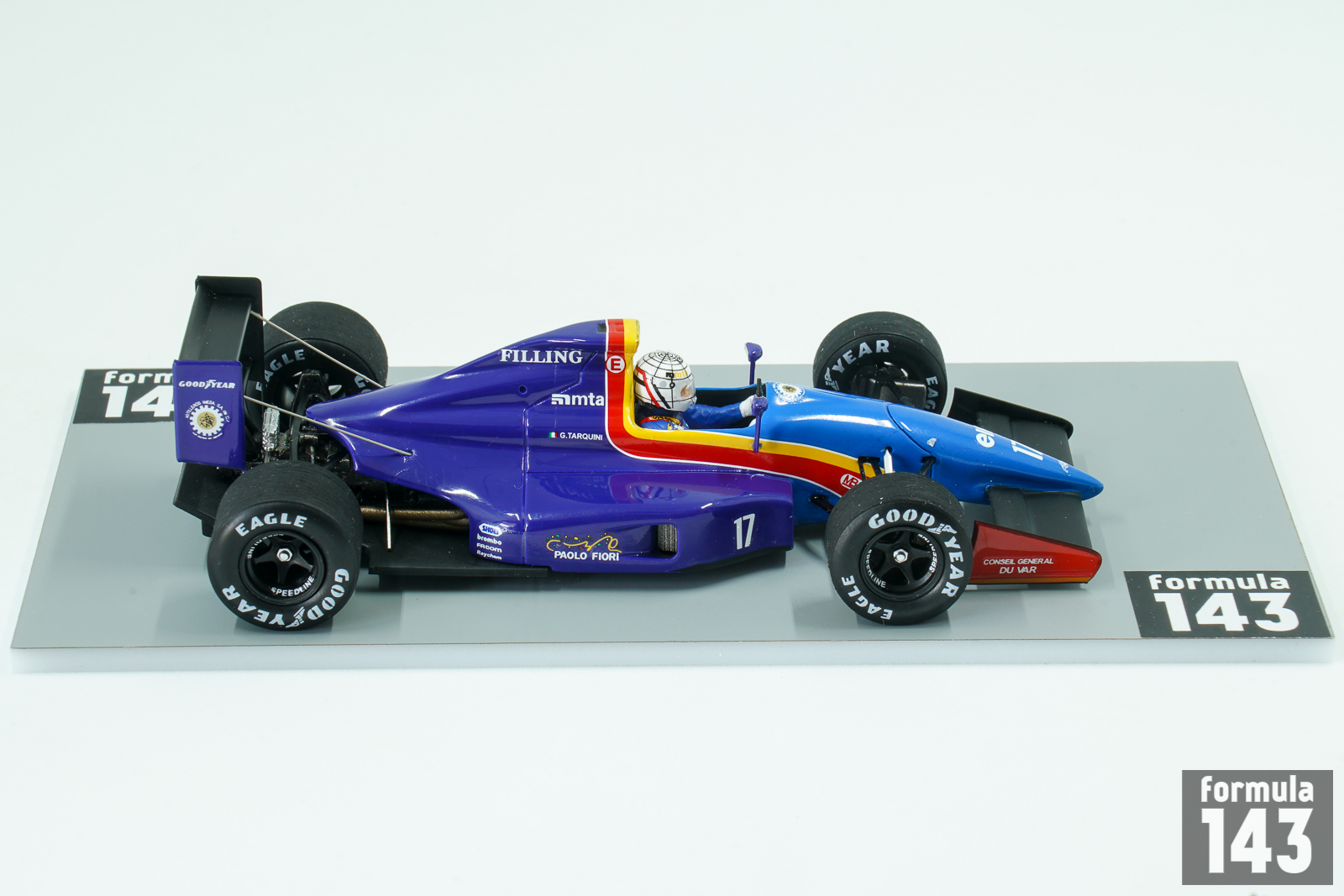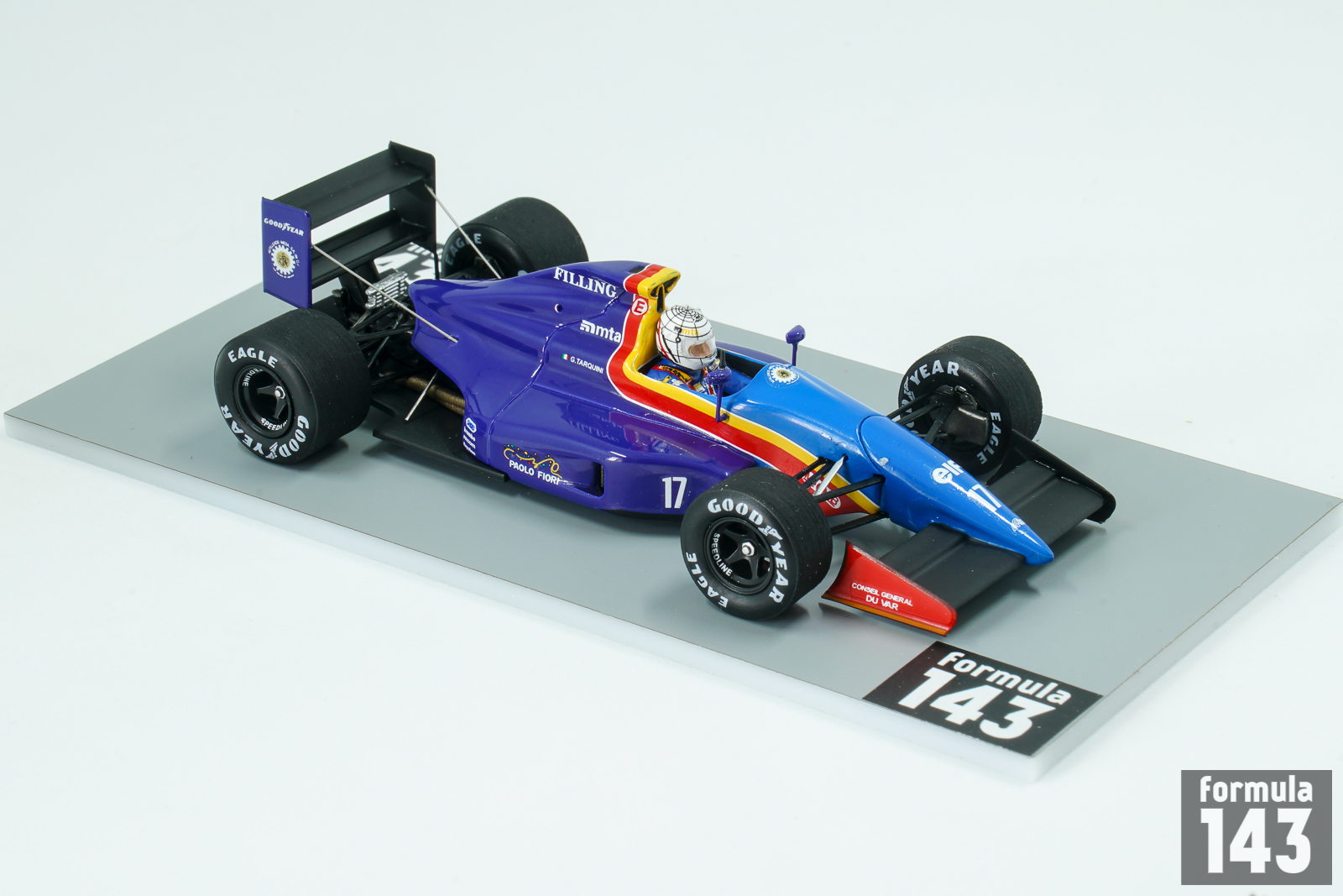 Starting from the 1991 French Grand Prix AGS changed white livery to the blue one. The model represents the car driven by Gabriele Tarquini in the 1991 German Grand Prix.
