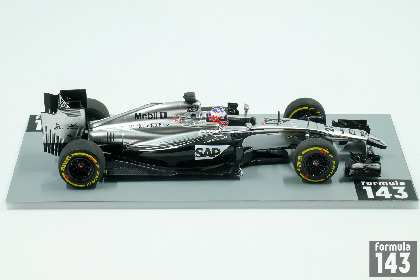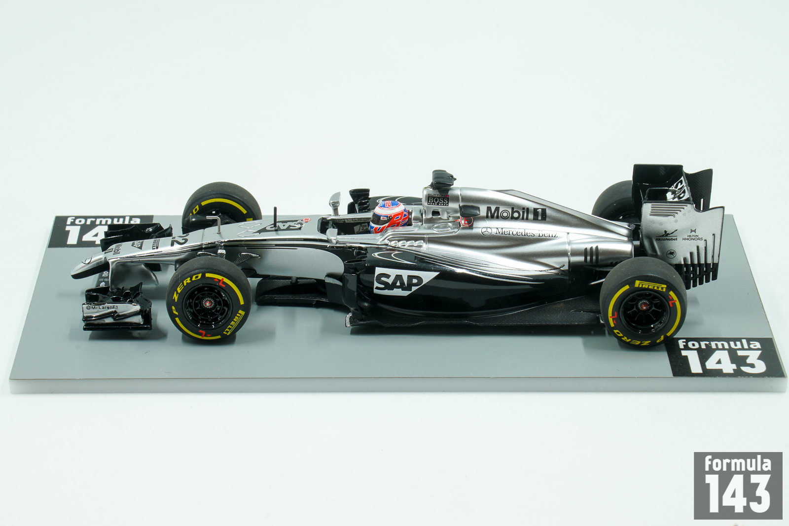 The McLaren MP4-29 is the last McLaren in an era powered by a Mercedes engine, a final iteration ahead of the team’s partnership with Honda as of 2015. The chassis was designed by Tim Goss, Neil Oatley, Matt Morris, Mark Ingham and Marcin Budkowski and was driven by was driven by 2009 World Drivers’ Champion Jenson Button and debutant Kevin Magnussen, who replaced Sergio Pérez, after he won the 2013 Formula Renault 3.5 Series title. At the start of the season, Kevin Magnussen and Jenson Button finished third and fourth on the road, respectively, but were elevated to second and third after Daniel Ricciardo’s disqualification. After this promising performance the team failed to record another podium finish all season, and although statistically, the MP4-29 was the most mechanically reliable car of the season with 36 classified finishes out of a possible 38, they ultimately finished fifth in the Constructors’ Championship.