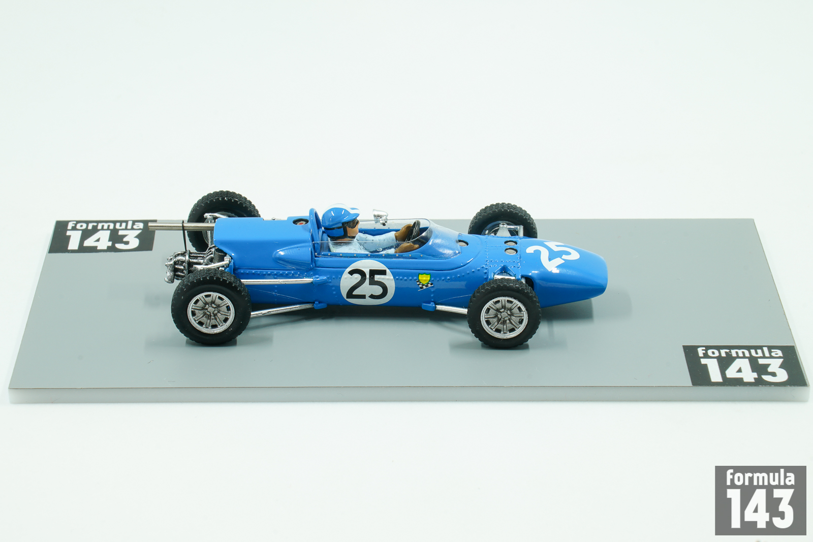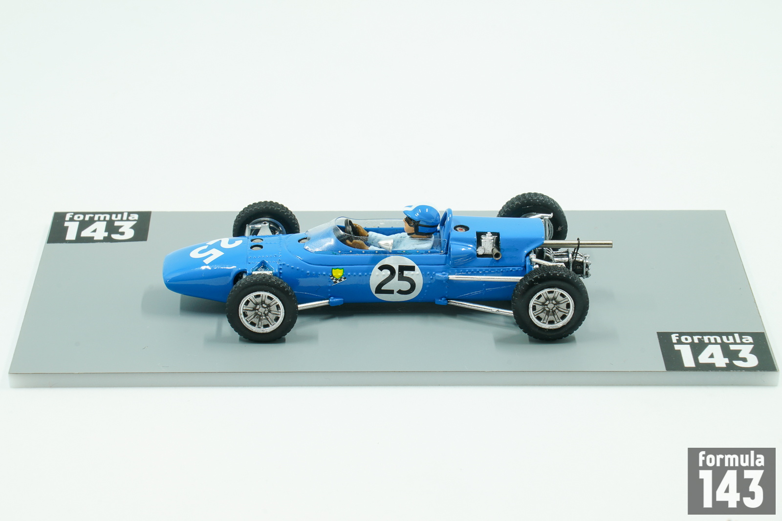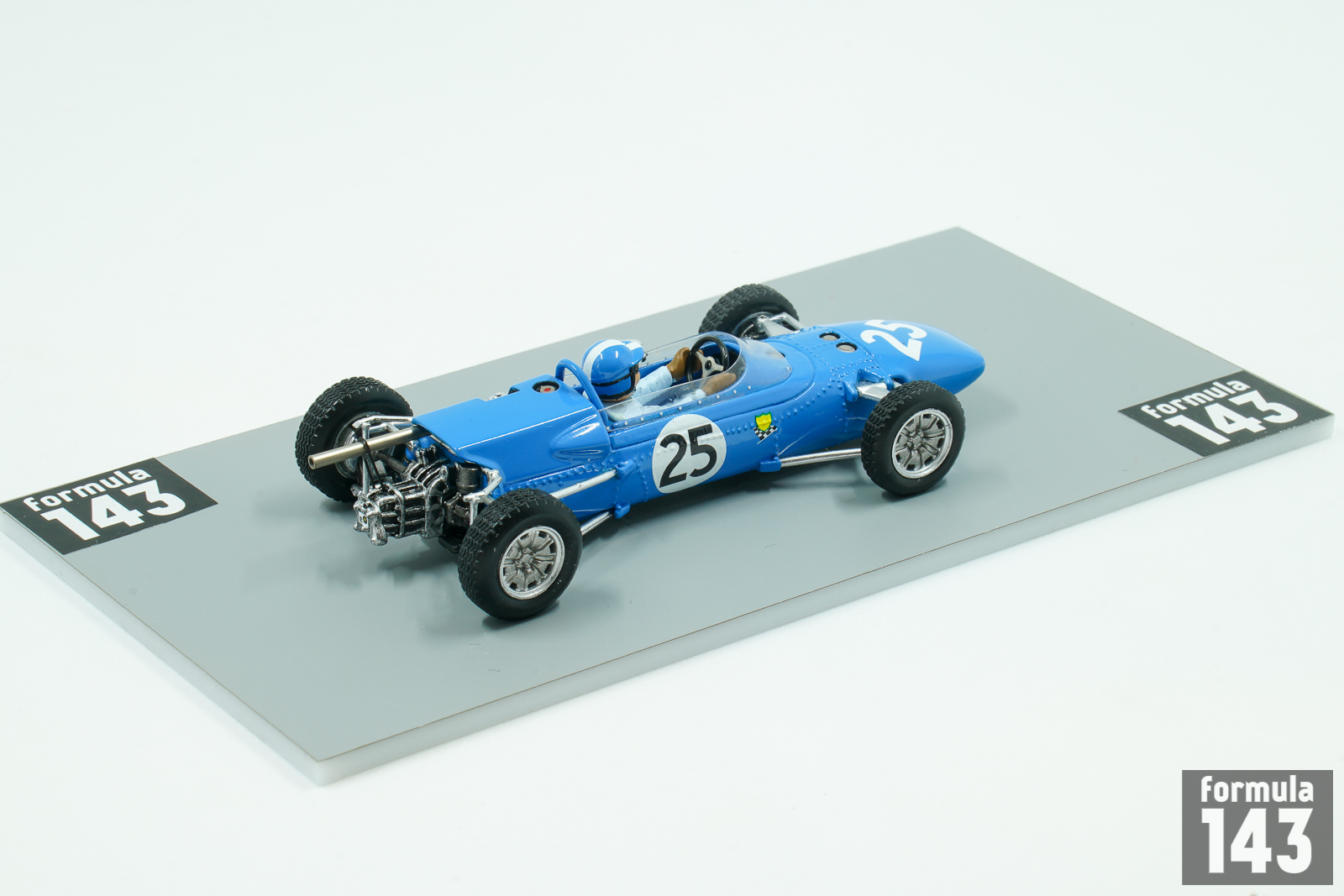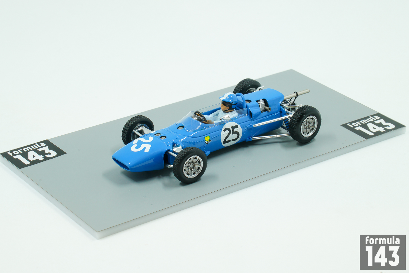 The Matra MS1 (abbreviation of Matra-Sports-1) was the first open-wheel formula racing car by Matra. The car was built in 1965 and was conventional F3 car powered by a naturally aspirated, 997 cc Cosworth MAE inline four-cylinder engine, producing 100 hp, mated to a 5-speed Hewland T.L.200 manual transmission, that drove the rear wheels. The body was constructed out of lightweight fiberglass, and the chassis is an aluminum monocoque. Blue MS1 cars were campaigned in the F3 class during the 1965 season. Driven by Jean-Pierre Beltoise and Jean-Pierre Jaussaud, they were instantly successful. Beltoise won the important F3 race at Reims and he would go on to win the French Championship. Jean-Pierre Jaussaud won two French F3 races (Coupe de Paris at Linas-Montlhéry, and Coupe Internationale de Vitesse at Albi) and was runner-up in the championship. The scale model from Spark epresents car driven by Beltiose in the Reims F3 IX Coupe Internationale de Vitesse.