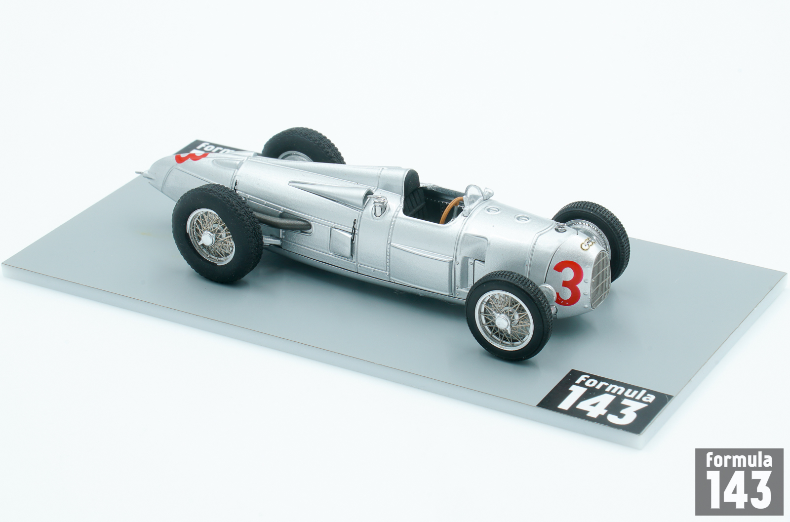 Auto Union AG was an amalgamation of four German automobile manufacturers, founded in 1932 by merging of DKW, Horch, Audi and Wanderer. In the 1934 season Auto Union debuted in Grand Prix racing with their revolutionary rear engined 4.3 liter Auto Union A, also known as the P-wagen (P stood for Porsche). The car was designed under the lead of Dr. Ferdinand Porsche, and was built by a specialist racing department of Auto Union’s Horch works in Zwickau, Germany. Ex racing driver Willy Walb functioned as team manager, and four German drivers were selected for the works team – top driver Hans Stuck and the lesser known Hermann zu Leiningen as principal drivers with August Momberger and Wilhelm Sebastian as reserves.