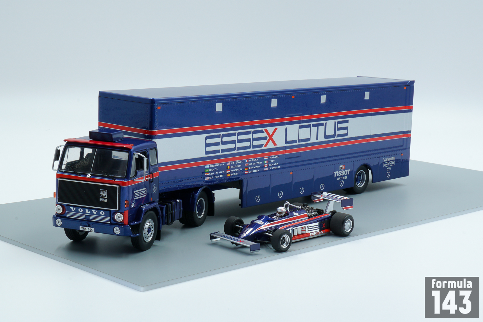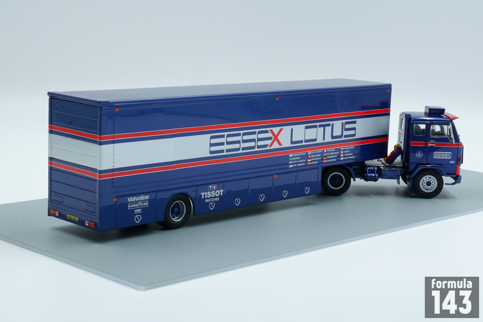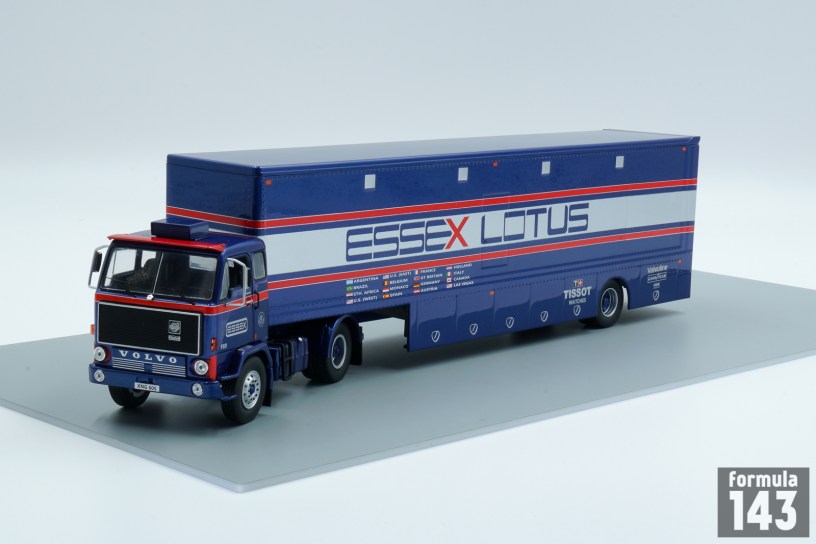 The Volvo F88/F89 was a series of heavy-duty trucks produced by Swedish automaker Volvo between 1965 and 1977. The F89 model was larger and more powerful than previous F88. The F89 was introduced in 1971 and was in production until 1977. The truck was powered by 12 liters Volvo TD120: I6 ohv turbodiesel engine developing 330 PS. This model represents racing car transporter in the colors of Team Essex Lotus used in the 1981 season.