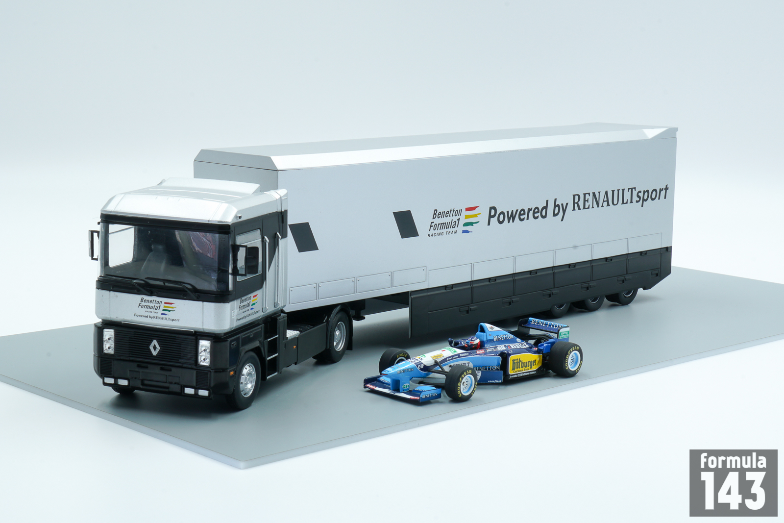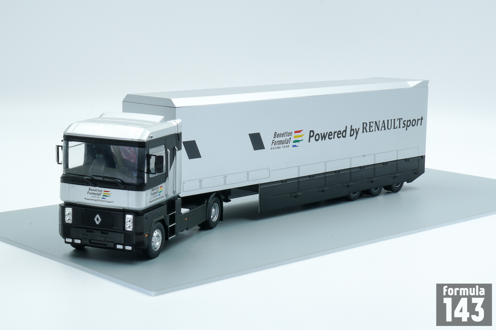 The Renault Magnum was produced by the French Manufacturer Renault Véhicules Industriels and later Renault Trucks (also part of Renault) from 1990 to 2013. The truck designed by Marcelo Grandini was launched as the Renault AE (for AErodynamic) in 1990, and notable for being the first modern truck with a completely flat cab floor and for having a mechanically separate cab and engine compartment, resulting in increased comfort inside the cab. It was marketed as Renault Magnum since 1997 when the version with redesigned cabin appeared. The AE trucks were powered by AE380 6-cylinder turbodiesel offering 374 hp, and by the AE500 503 hp Mack V8 diesel. The AE truck was used as Benetton F1 team transporter in 1995-97.