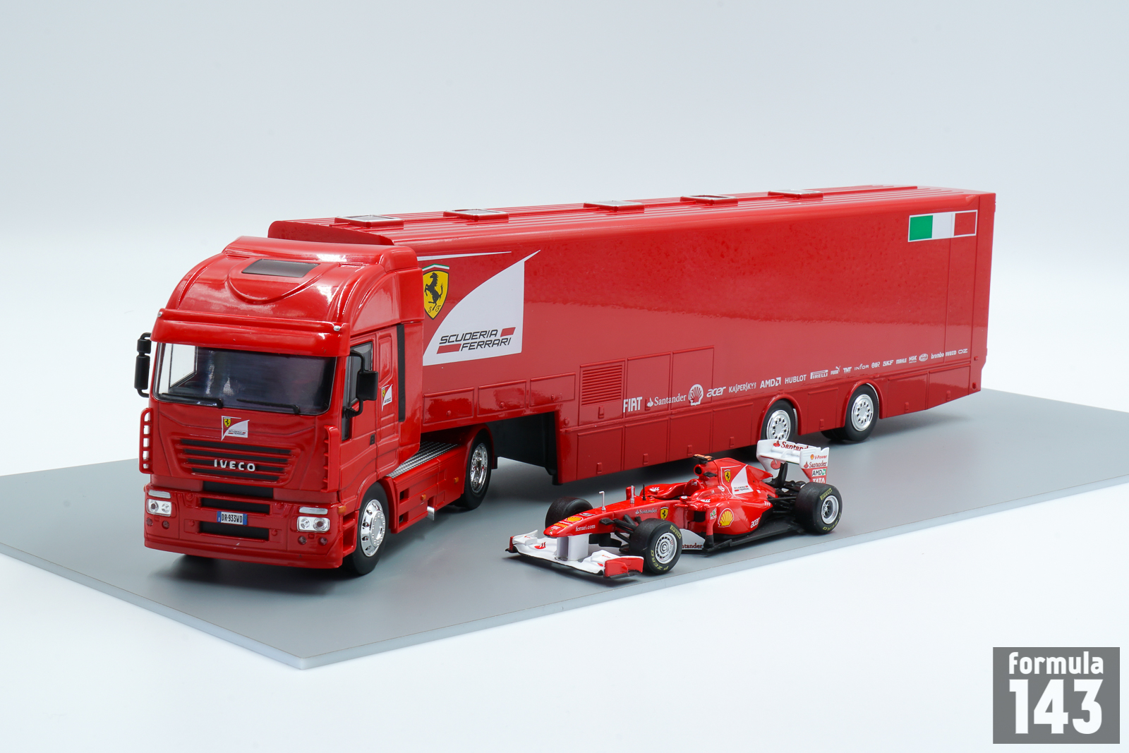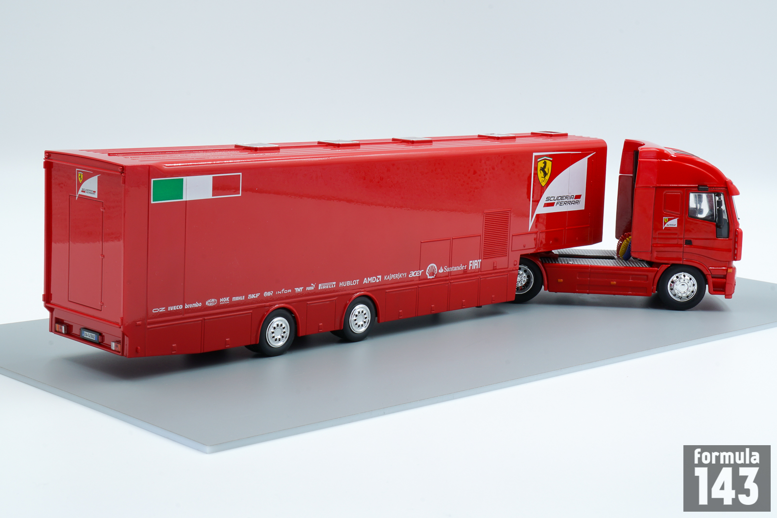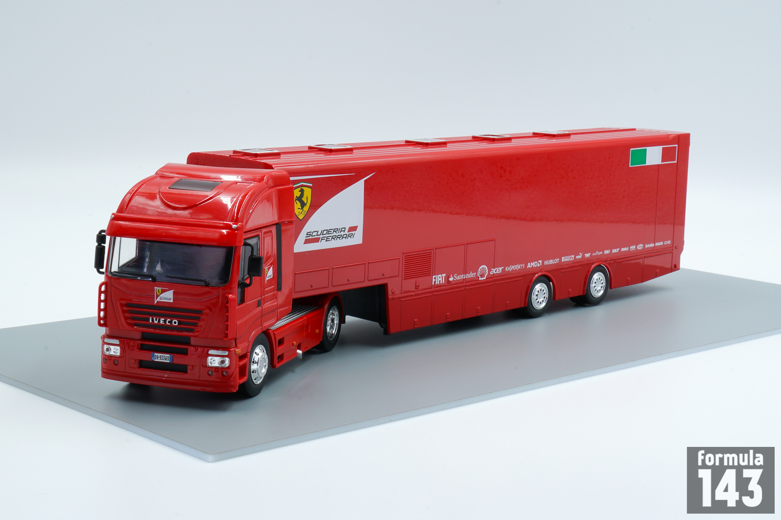 The Iveco Stralis is a heavy-duty truck produced by the Italian manufacturer Iveco between 2002-2019. The original Stralis, introduced in 2002, was the first heavy truck with an automated gearbox as standard equipment. The power unit was the Diesel Iveco Cursor F1B developing 310 to 560 hp. In 2007, the Stralis range has undergone a very significant evolution with the presentation of the second series. The cabin has been completely redesigned inside, to improve the comfort and safety of the driver but also outside to reduce consumption. For a long time in 2000s Stralis trucks were used by Scuderia Ferrari F1 team. This one is from 2011 season.