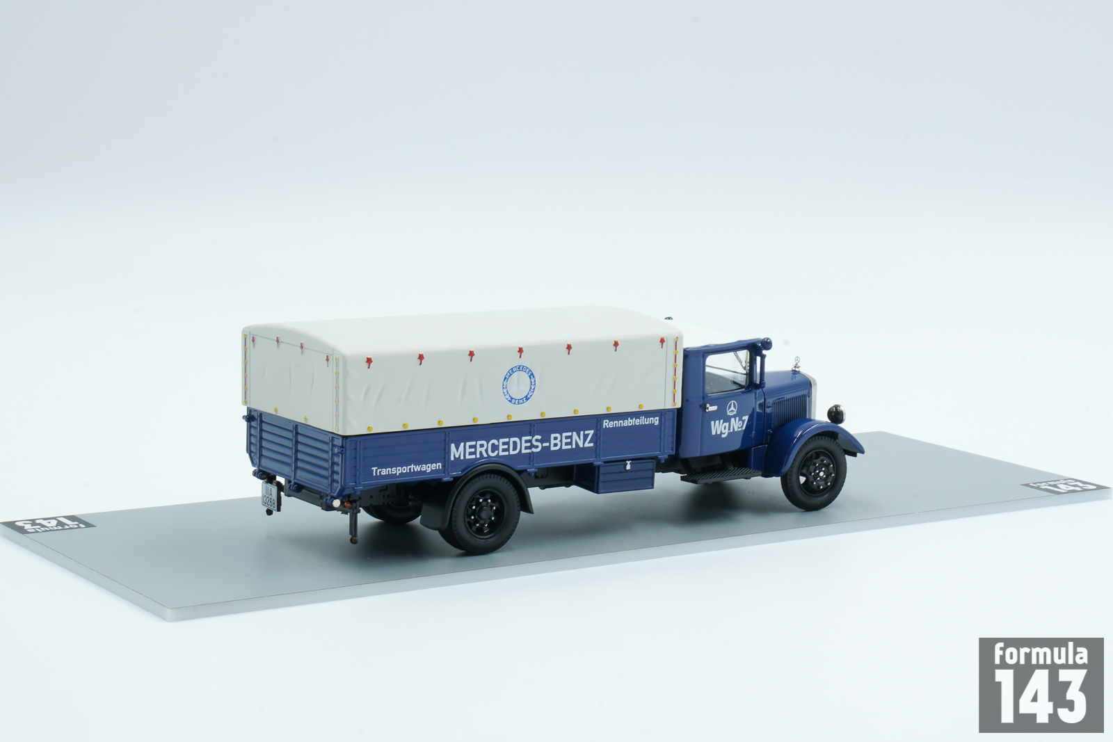 The Mercedes-Benz LO2750 platform truck was produced from 1932 to 1936 at Mercedes-Benz’ plant in Gaggenau, Germany. Over 3500 made, and it’s chassis could be used both for trucks and buses – that’s why it’s designated “LO” (Lastwagen Omnibusse), German for truck and bus. The truck was powered by the OM65, a 5.0 liter inline-4 diesel engine, that produced around 65 hp. From 1934 onward the Racing Department (Rennabteilung) counted on at least seven LO 2750 as transporters and service trucks numbered as “Wagen No…” . All were painted in blue and white with a big Mercededs-Benz Rennabteilung printed in bold on the sides.