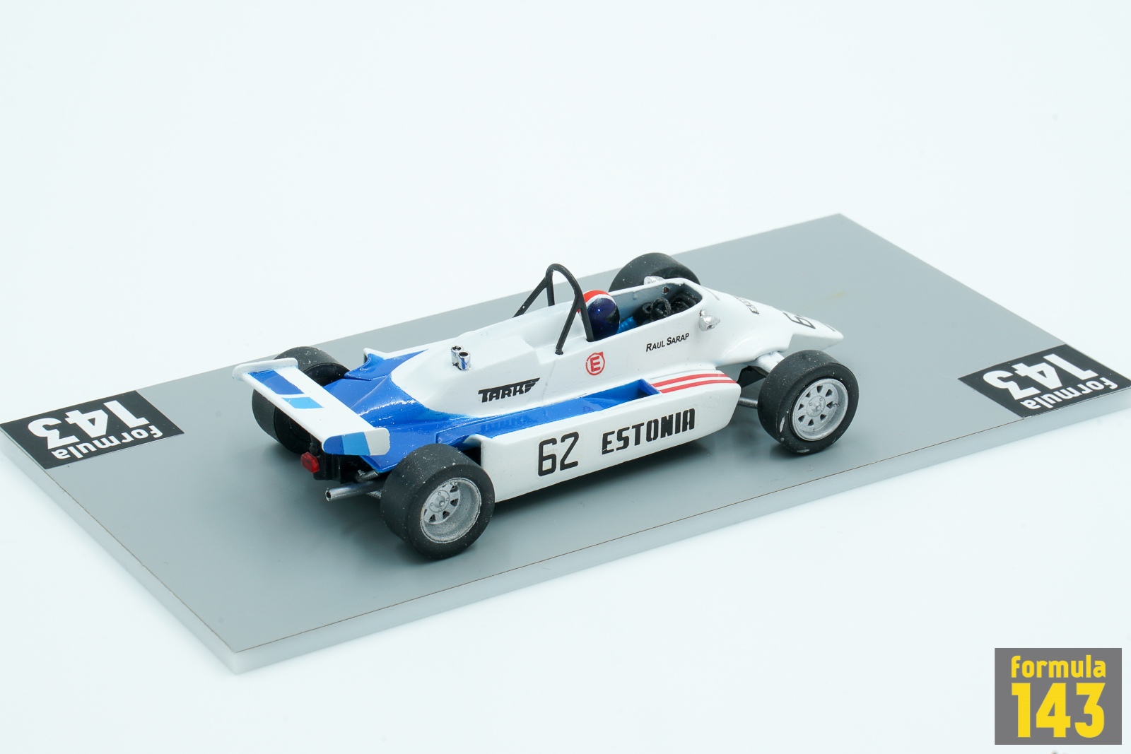 Estonia 21 designer Raul Sarap was himself an active high level racing driver. In 1976 – 1983 he was the member of the USSR national team participated in the Friendship Cup of Socialist Countries (FCSC). The model represents his original Estonia 21 car from the 1983 season. That year Sarap took part in his final FCSC race at Chaika circuit near Kiev were he finished 8th. In 1983 he also was 4th in the Soviet Formula Easter Championship finishing 4th at both races counted to the championship. Altogether Sarap took part in 7 seasons of FCSC not rising above the final 14th place (in the 1977 and 1980 seasons). At the national level he represented Kalev Tallinn team in 1976 -1987 in USSR Formula 3 and Formula Easter Championships winning the Formula Easter title in 1978 (in Estonia 19M) and securing 4 victories in 1976 – 1979 seasons.