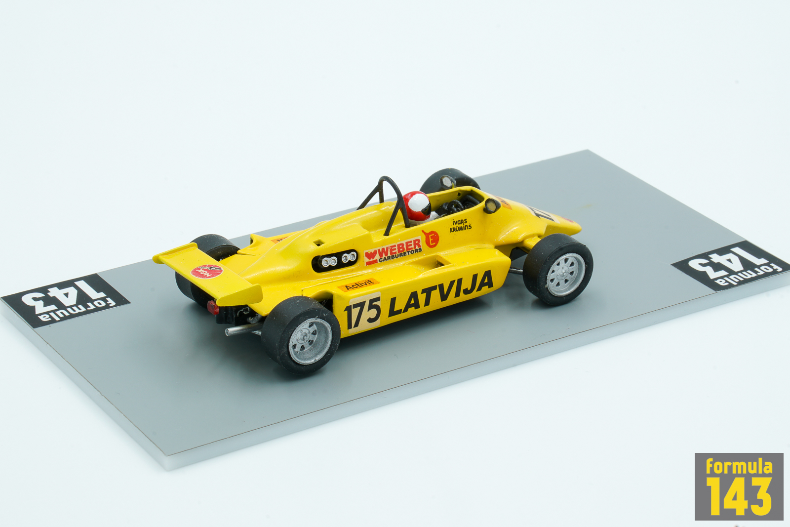 The model represents Krumins in his Estonia 21.10 M from the 1989 season as raced at the international Schleiz Dreieck race in the East Germany. In the 1989 Krumins took part in the Soviet Formula Mondial Championship. He started only in one of three races of the series (at his home circuit of Bikernieki in June), where he finished 5th. Krumins was classified 13th with 40 points in the final standings of the series.