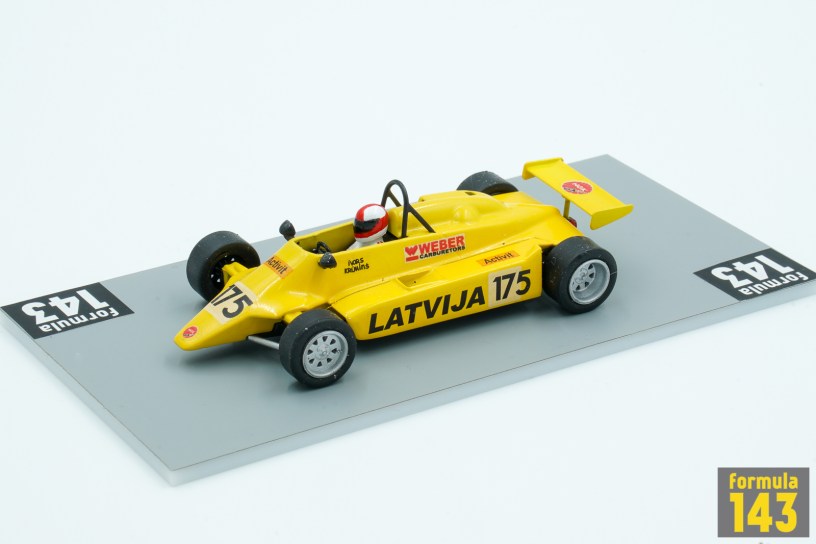 The model represents Krumins in his Estonia 21.10 M from the 1989 season as raced at the international Schleiz Dreieck race in the East Germany. In the 1989 Krumins took part in the Soviet Formula Mondial Championship. He started only in one of three races of the series (at his home circuit of Bikernieki in June), where he finished 5th. Krumins was classified 13th with 40 points in the final standings of the series.