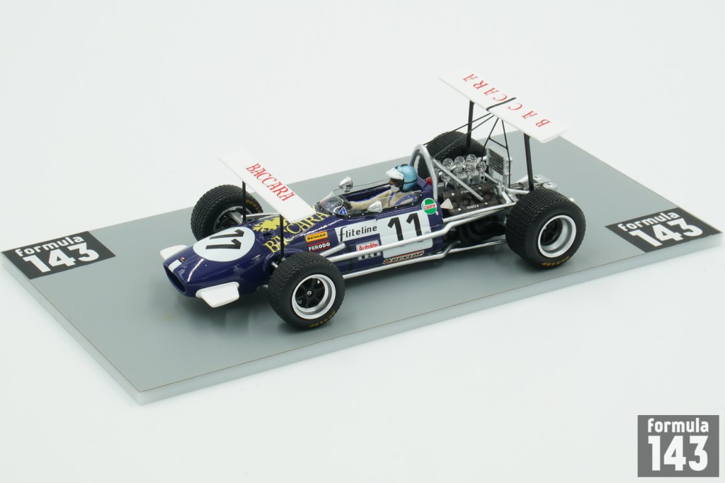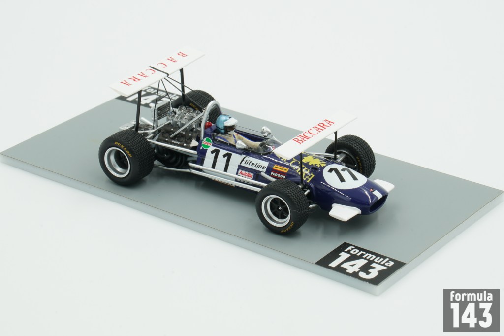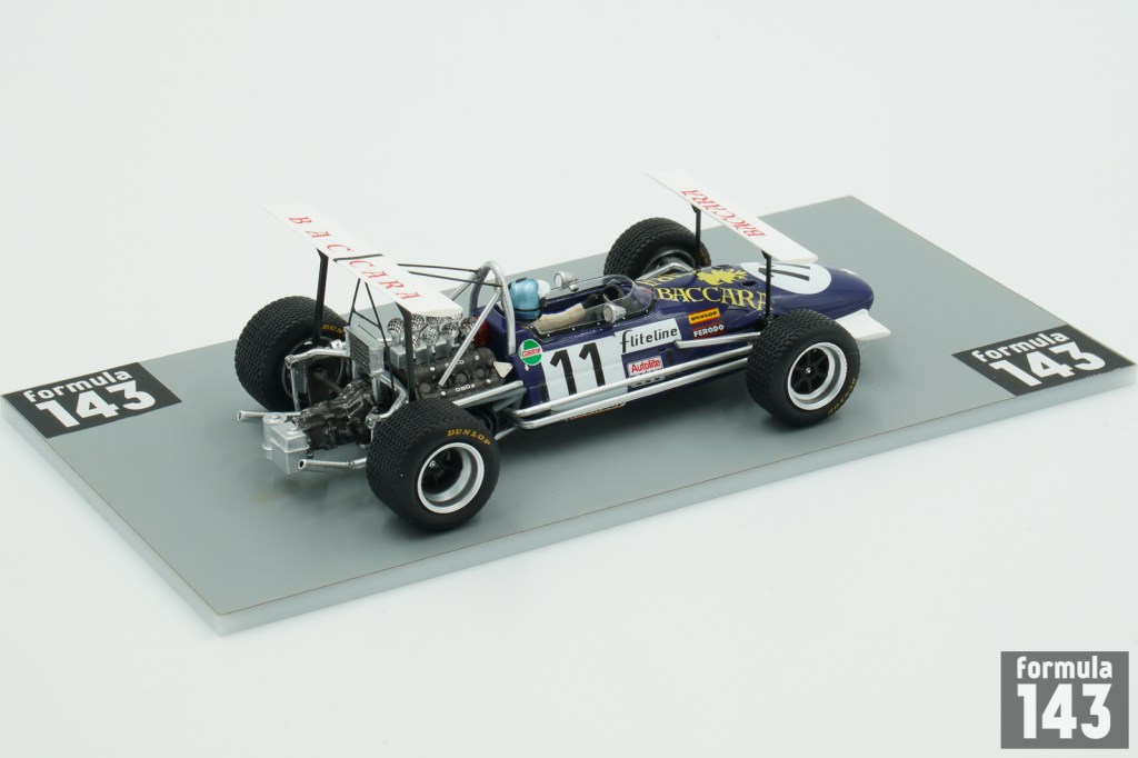 The BT26 was a technically advanced car for its time. It was constructed from lightweight, high-tensile strength aluminum and featured a streamlined, aerodynamic body design. The BT26 was also notable for its innovative use of a rear wing. This was a new feature in Formula One racing, so Brabham, as some other F1 teams, tried various configurations of the rear wing throughout the season. At the Spanish GP Brabham experimented with the high rear and front wings attached to the suspension.