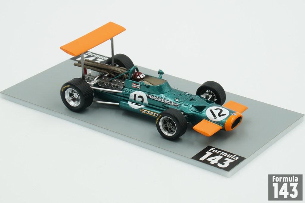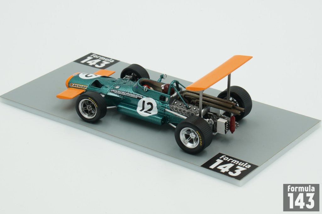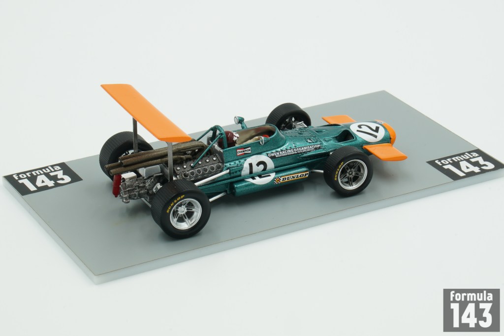John Surtees and Jackie Oliver represented BRM’s Owen Racing Organisation in the 1969 Formula One season. The team used three models – P133 (with BRM P101 3.0 V12 and BRM P142 3.0 V12 engines), P138, and P139. The model represents the P133 driven by Oliver at the Spanish Gran Prix. Please note the high rear wing which BRM, as some other F1 teams, used at this race.
