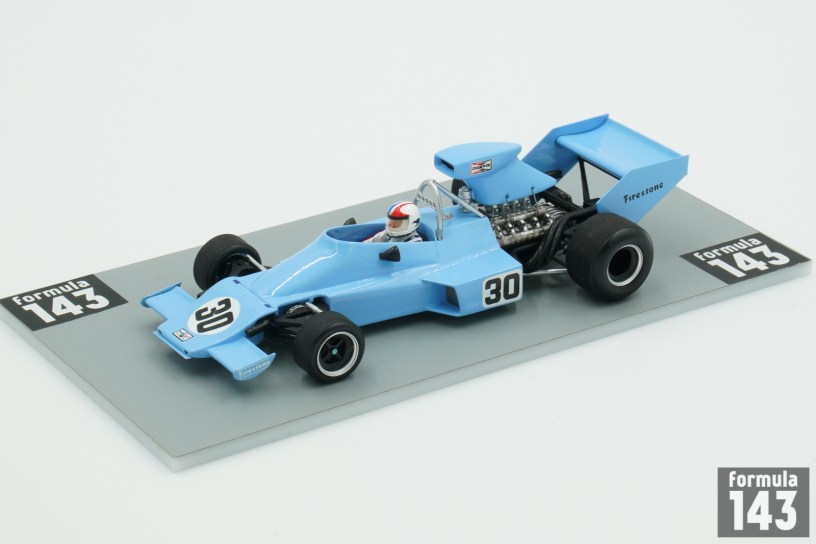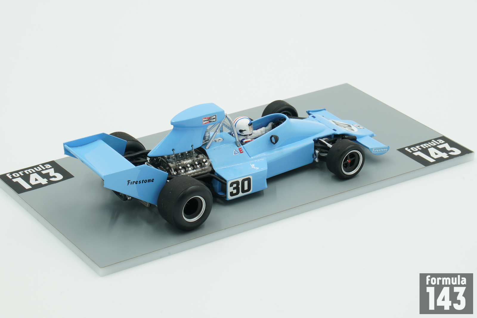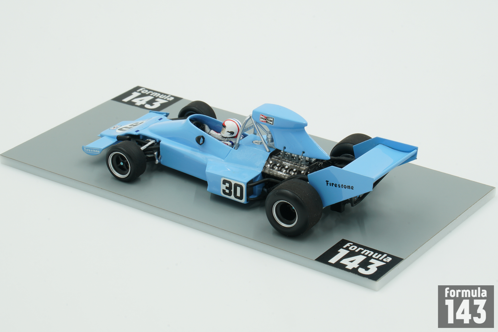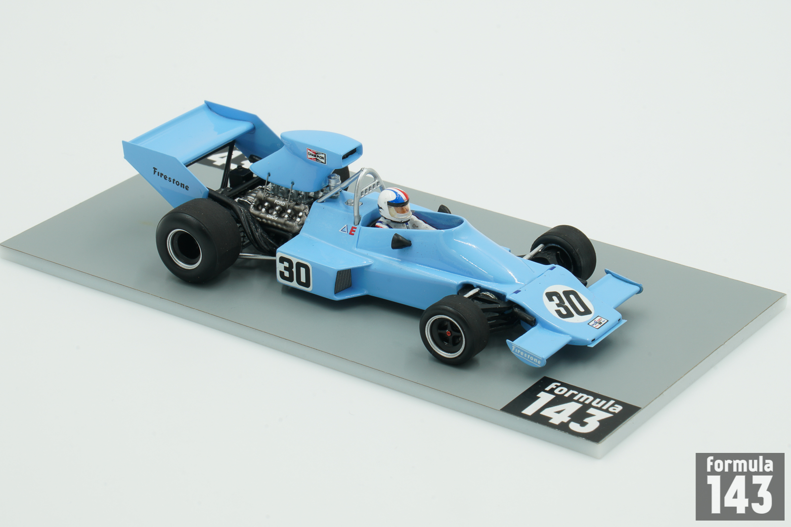 Amon AF1 was the only car produced by Chris Amon Racing, team founded by New Zeeland driver. The AF101 (also referred as AF1) designation deriving from A for Amon and F for Gordon Fowell, team co-founder. The car was a typical F1 design, developed by Fowell and Tom Boyce, featuring alumimium monococque and Ford-Coswotrth DFV engine. The unusual feature of the AF1 was that the fuel tank was located between the driver’s cockpit and the engine. The car driven by Amon himself debuted at the Spanish Grand Prix where Chris qualified 23rd but retired due to disc brakes problems. Then the car appeared at Monaco Grand Prix, but after qualifying 23rd Amon was unable to start the race because of mechanical problems. The scale model by Spark represents Amon AF1 from this race. Then after a couple of DNQ by Amon and his Australian fellow driver Larry Perkins the Amon F1 project was closed.
