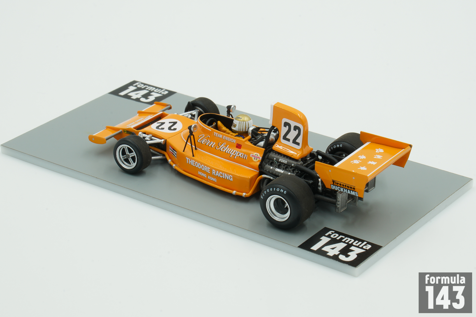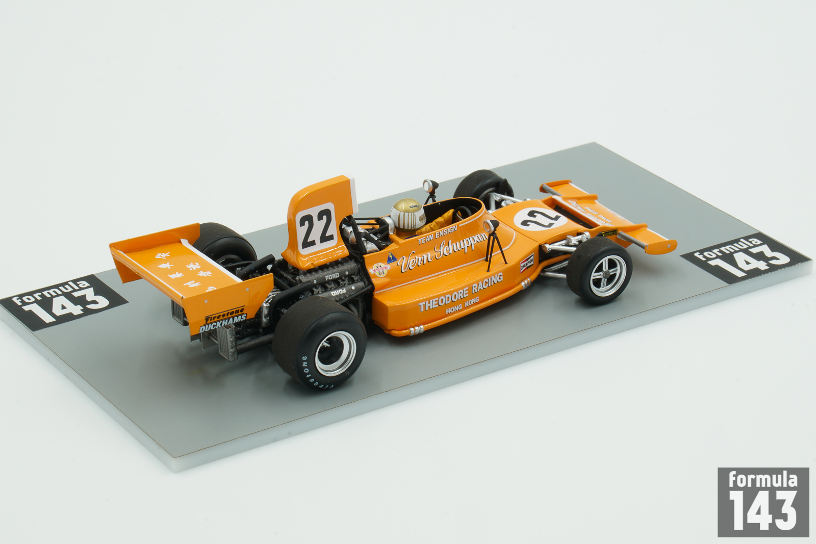The N174 appeared in 1974 season was the second F1 car built by Ensign. Like N173 it comprised an aluminium monocoque, conventional outboard suspension, DFV engine and Hewland FGA400 gearbox. The car was used in 1974-75 seasons and in the beginning of the 1976. In the 1974 F1 season, Ensign was represented by single car driven by Rikki von Opel in round one, Australian Vern Schuppan (six following races) and British Mike Wilds (last four rounds). Schuppan was entered as Team Ensign with Theodore Racing, while Wilds entry was Dempster International Team Ensign. Schuppan’s 15 place at Belgian GP was the only classified finish for the team in the 1974.