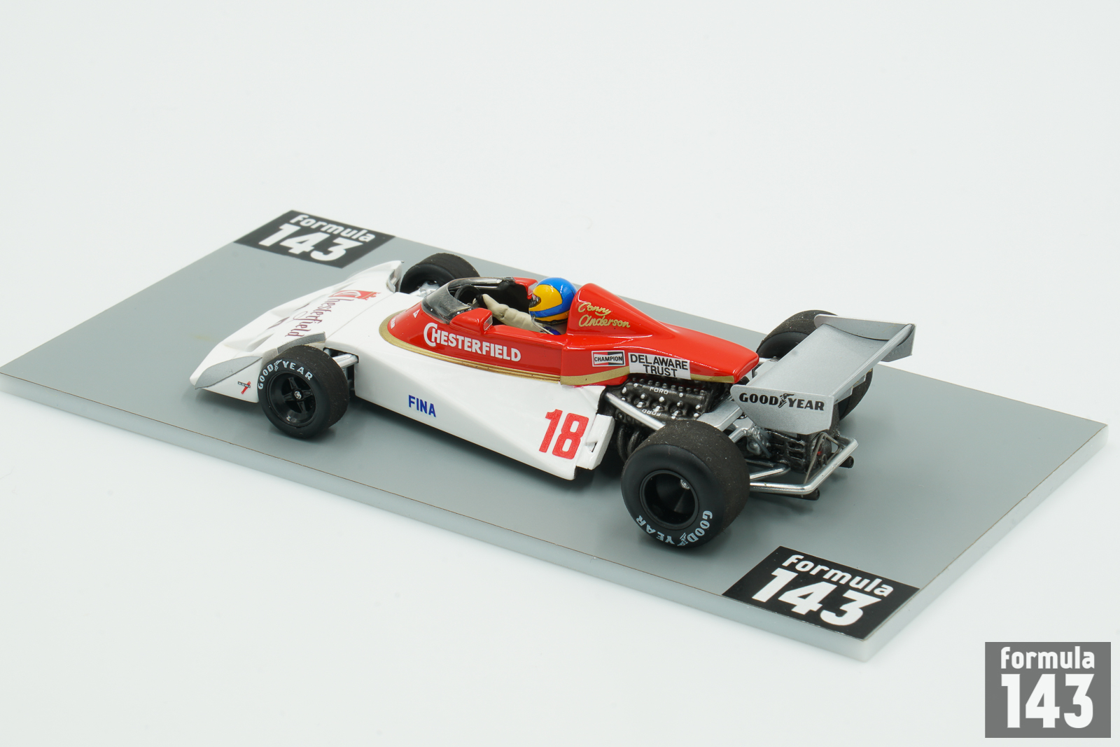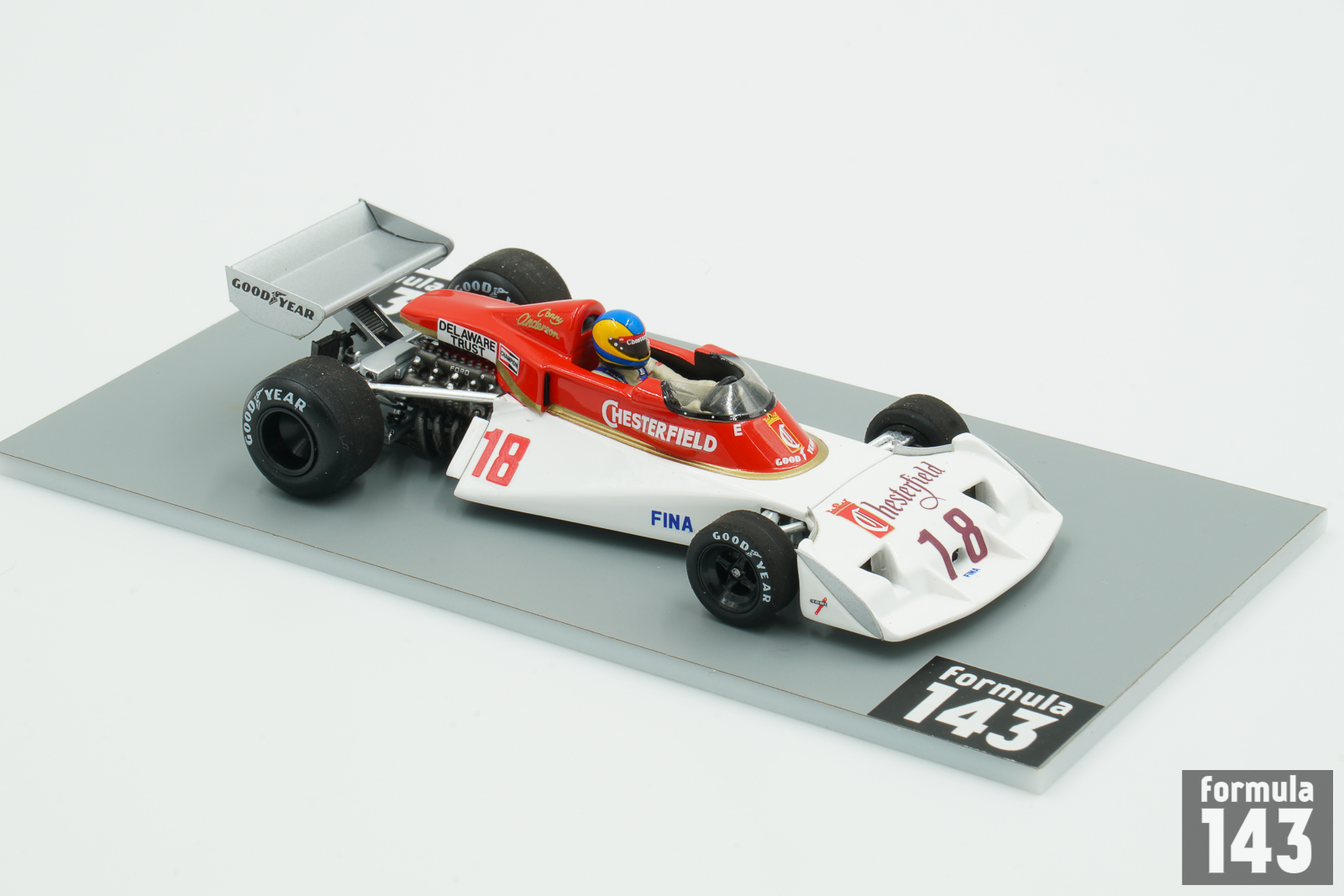 The TS19 designed by John Surtees and Ken Sears was introduced for 1976 season, and was raced by the team until the beginning of 1978. In 1976 Surtees entered two cars, one for Alan Jones with the controversial sponsorship by Durex condoms, and second for Brett Lunger sponsored by Campari. Jones was able to finish in points in three races and was 15th in the final drivers’ standings. Lunger scored zero. Swedish Conny Andersson, former motocross and F3 competitor, replaced Lunger in the Dutch Grand Prix, in a car sponsored by Chesterfield cigarettes.