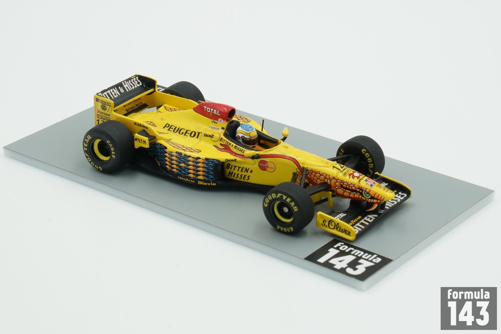 The Jordan car for the 1997 season was designed by Paul Crooks (chief designer) and Gary Anderson (technical director) and was powered by Peugeot A14 V10 engine. After a disappointing 1996 season, Eddie Jordan replaced Rubens Barrichello and Martin Brundle with two young drivers — German rookie Ralf Schumacher, younger brother of double World Champion Michael Schumacher, and Italy’s Giancarlo Fisichella, who had driven eight races for Minardi in 1996. Fisico finished the season 7th with two podiums (3rd in Canada and 2nd in Belgium). Ralf was 11th with 3rd-place finish in Argentina as his best.