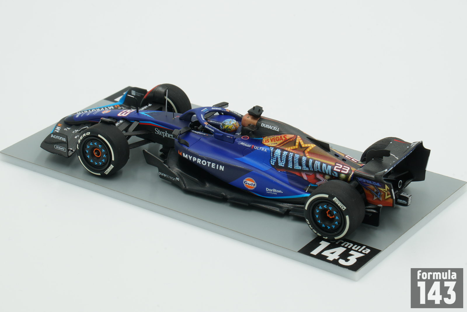 Alexander Albon drove this FW45 car in the special livery in the Las Vegas GP. The Mercedes-powered car was designed by François-Xavier Demaison (Technical Director) and David Worner (Design Director). Alexander Albon and American rookie Logan Sargeant finished the championship 13rd and 21st respectively.
