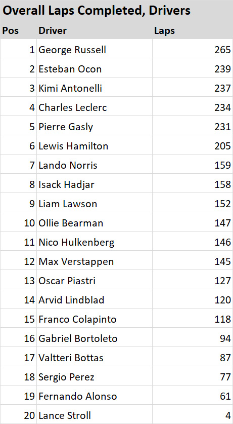 6. The results of Lance Stroll, who completed only four laps in non-race mode on the fourth day, were not taken into account in the analysis.