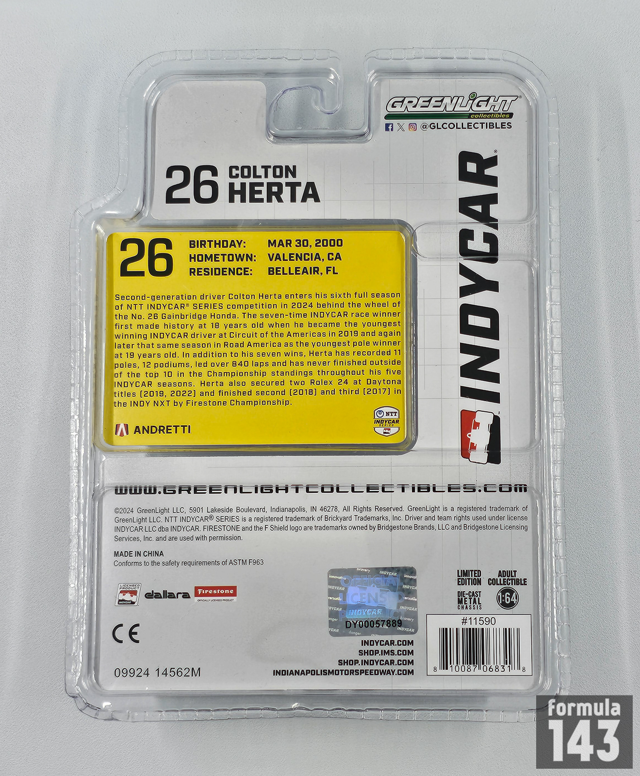1:64, 2024, Colton Herta, Dallara, Greenlight, IndyCar