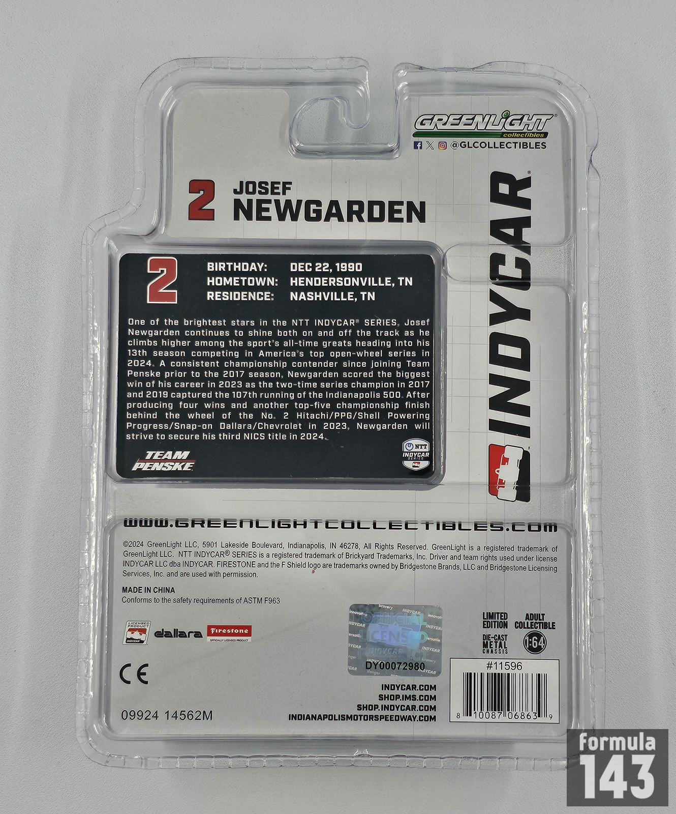 1:64, 2024, Dallara, Greenlight, IndyCar, Josef Newgarden