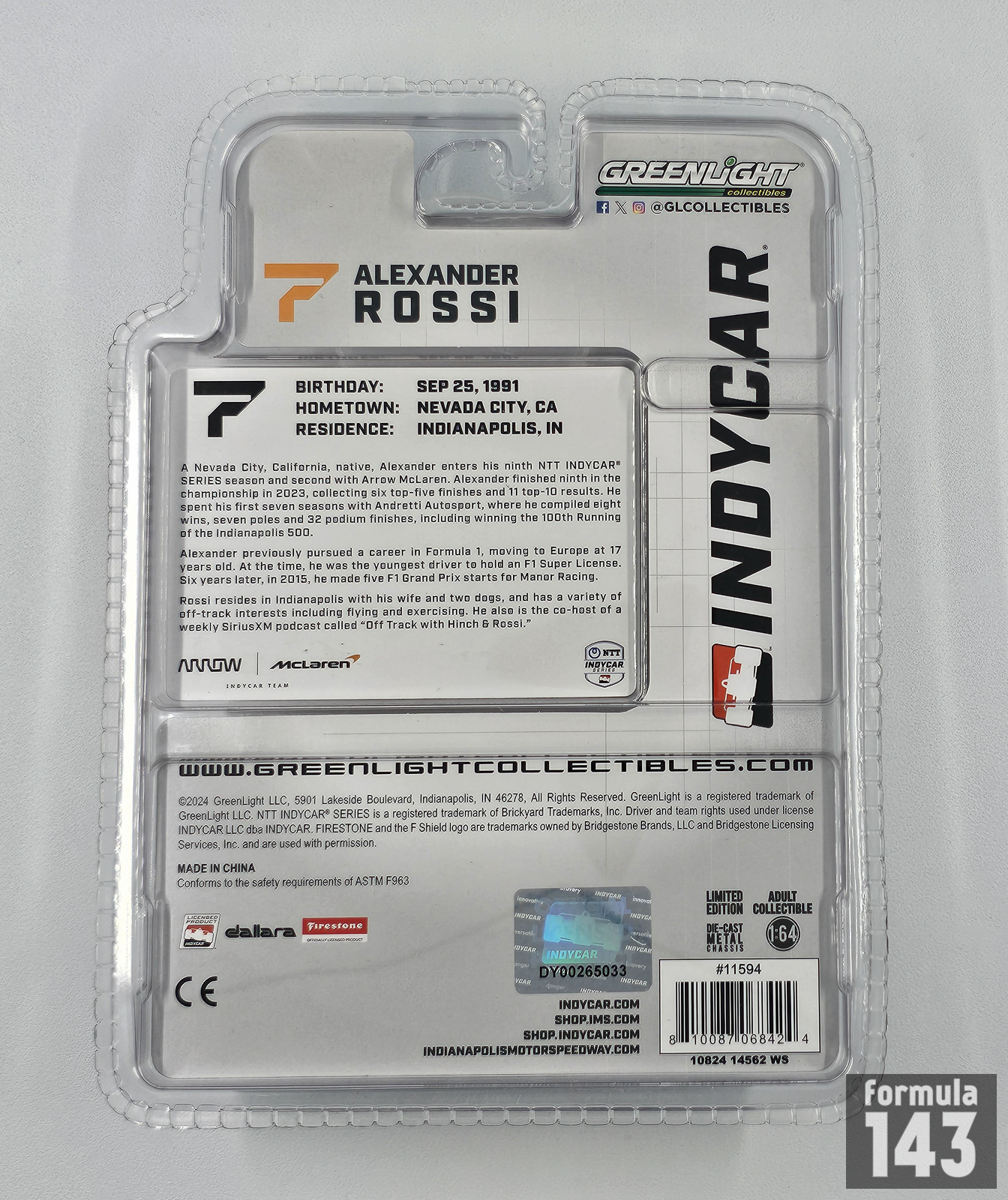 1:64, 2024, Alexander Rossi, Dallara, Greenlight, IndyCar