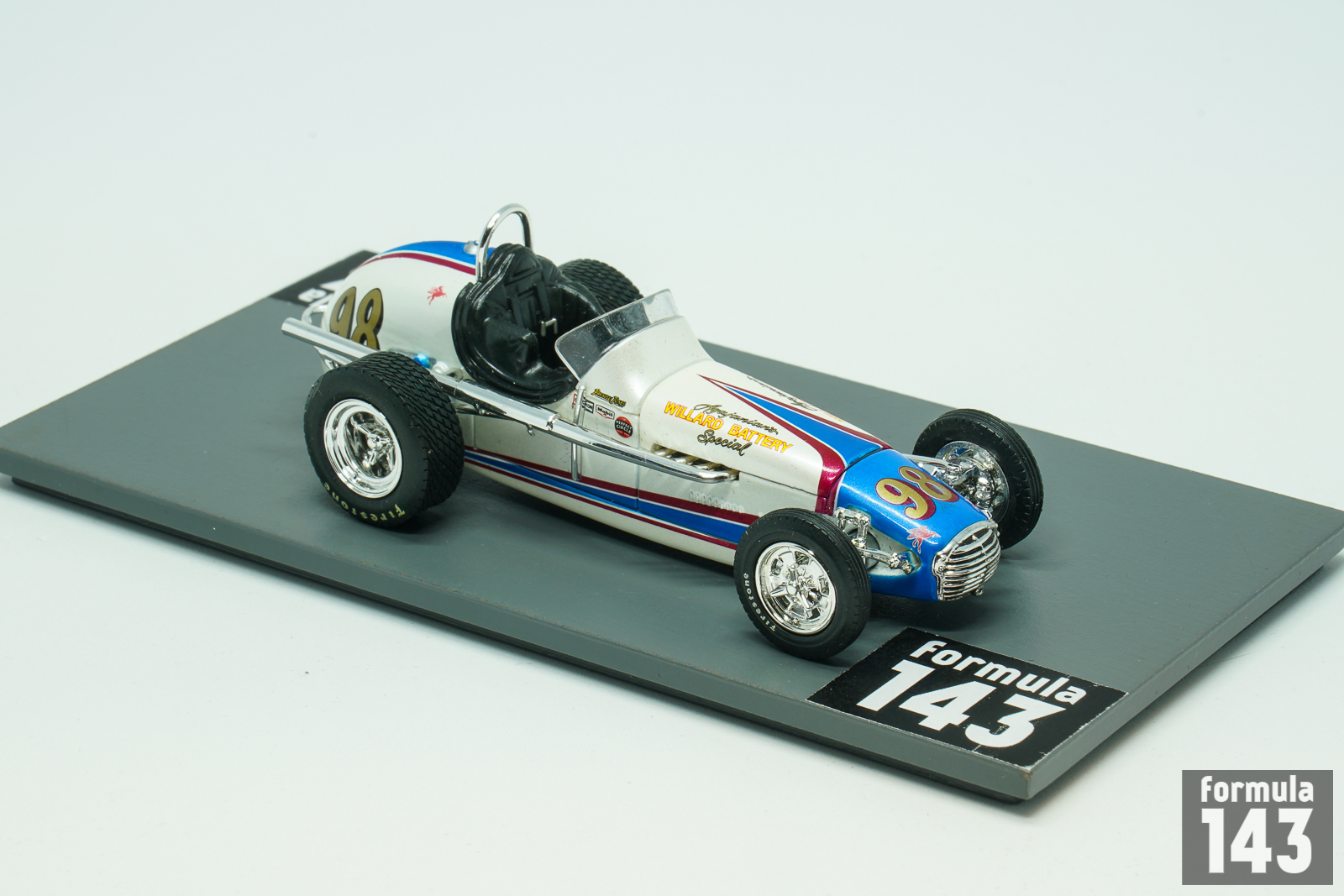 Replicarz. The Vermont-based scale model retailer recently launched several its own lines of exclusive 1:18 and 1:43 scale models, including IndyCar 1:43 series. Models made of resin of very high quality are produced in a very limited edition. To date, no more than 50 models have been released, covering the period from the 1920s to the 1990s. In the Replicarz palette there are Millers from 1920s – 30s, a series of cars of the 1950s, PJ Colt and Eagle of the 1970s, March of the 1980s. About two dozen more models are planned for release. Replicarz models in 1:43 disappear from the market even faster than Spark.