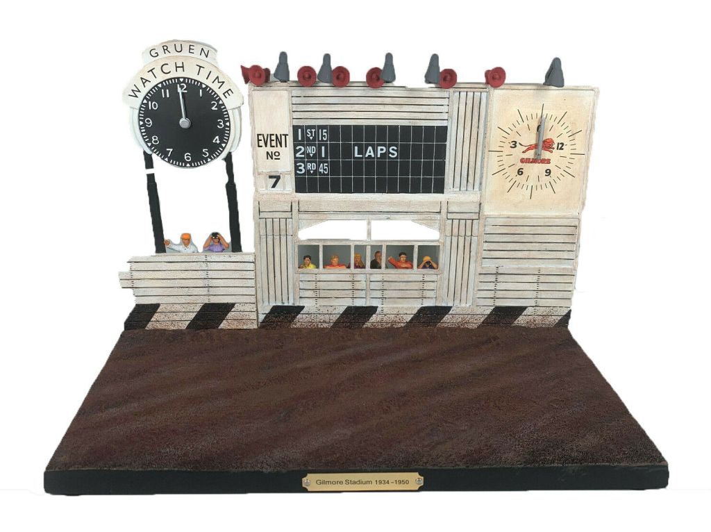 2. I recently picked up some 1:43 Dinky Grand Prix cars and was looking for a suitable display background and found the Gilmore stadium diorama on eBay for very cheap. It looks amazing and lights still work. I had no idea about the track history until I found your site. Thanks!