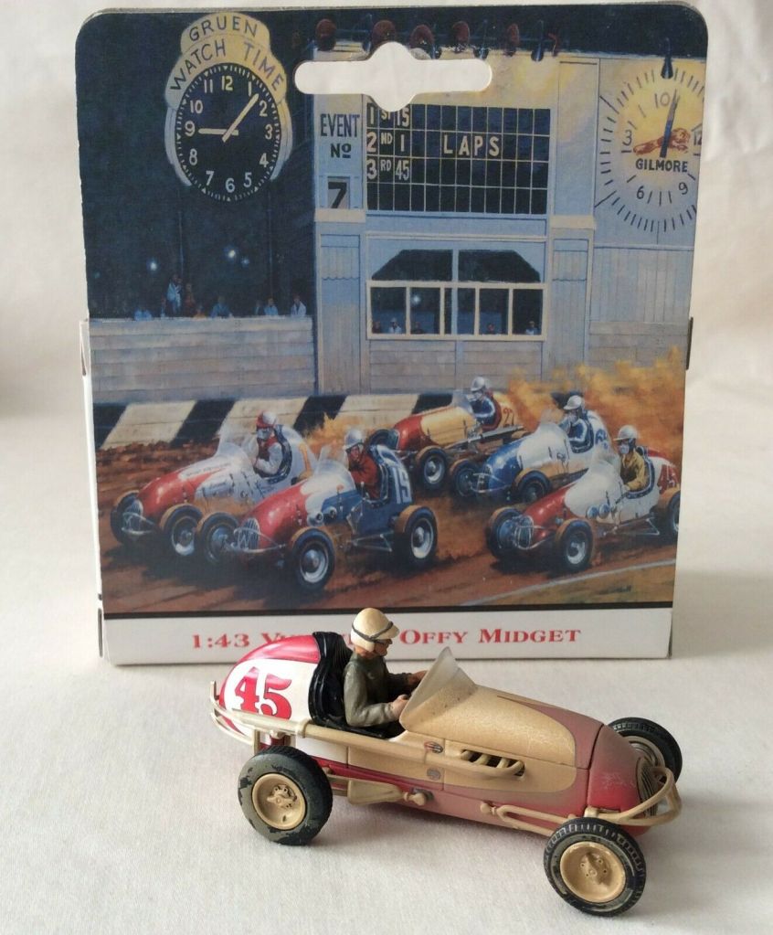 In 2002 the diecast brand GMP (Georgia Marketing and Products) have produced the “Gilmore Stadium Midget Series” set of models in 1/43 scale to commemorate the 50th anniversary of the Stadium demolishing. The set included a stadium diorama and 5 midget cars of Roger Ward, Danny Oakes, Perry Grimm, Bill Vukovich, and Walt Faulkner, all were sold separately.