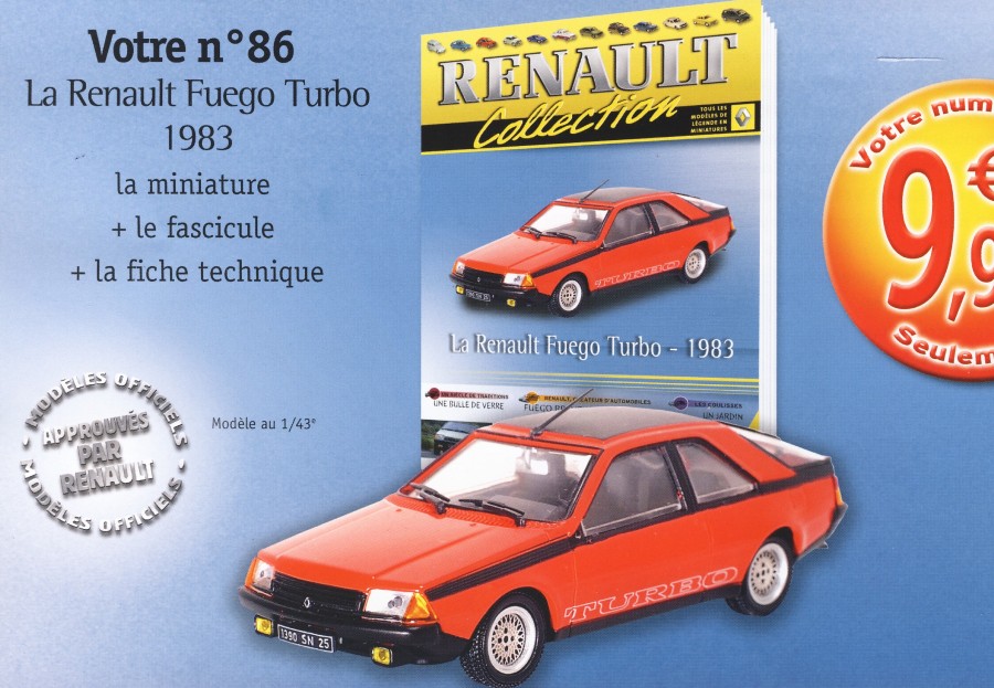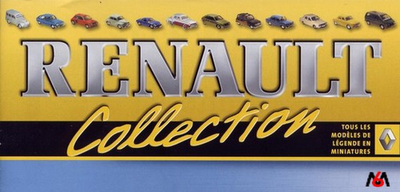 French most popular make was the subject of one of the first single-make magazine collection. Renault collection was published in France in 2005 – by French media holding M6. First issue was released during first week of 2005 and then collection continued biweekly until final issue 87 published on 27 August 2010. The collection was based on scale models produced by two companies – Norev and Universal Hobbies. Price of the issues was in usual range for French series of 2000s – 2.50 euros for issue 1, 4.90 for 2 and 9.90 for the issues 3 onwards.